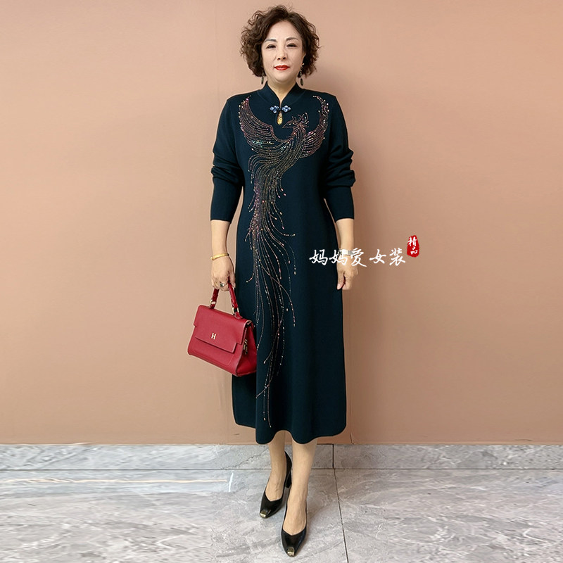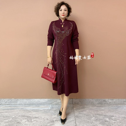 妈妈婚宴礼服旗袍裙2025秋冬新款喜婆婆婚宴装高贵优雅烫钻连衣裙