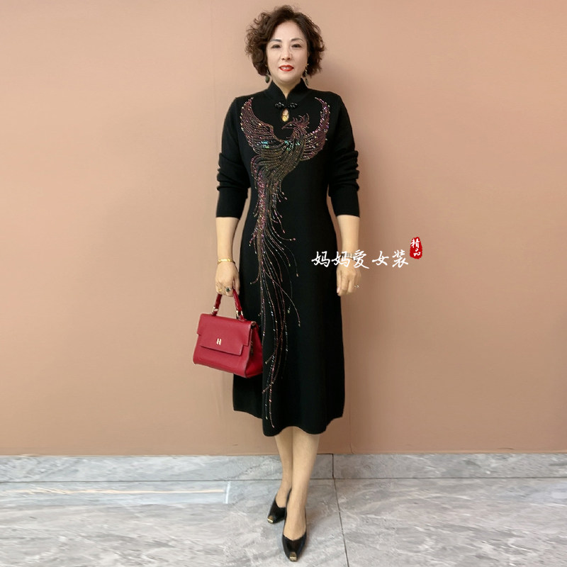 高品质!喜婆婆高贵烫钻针织长裙