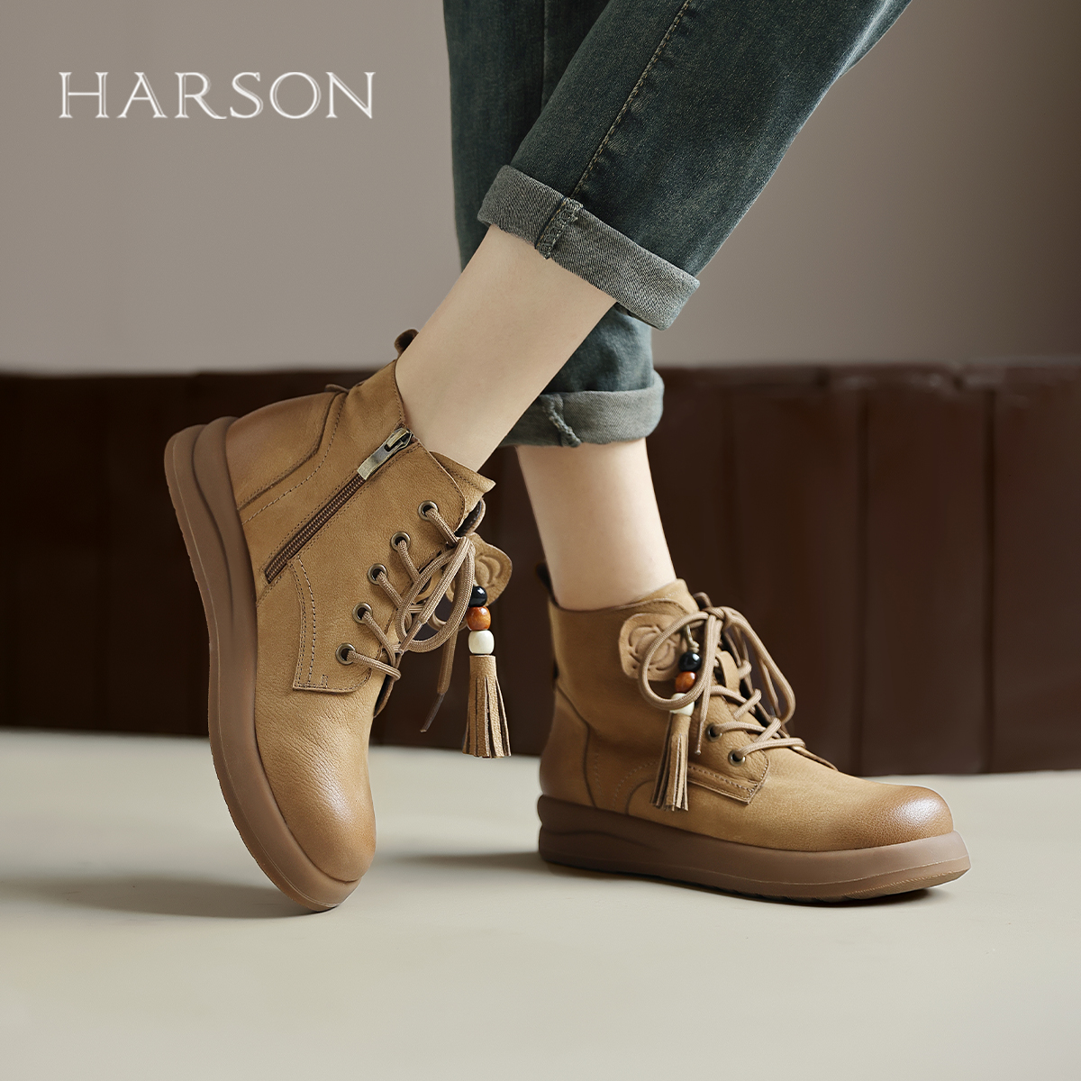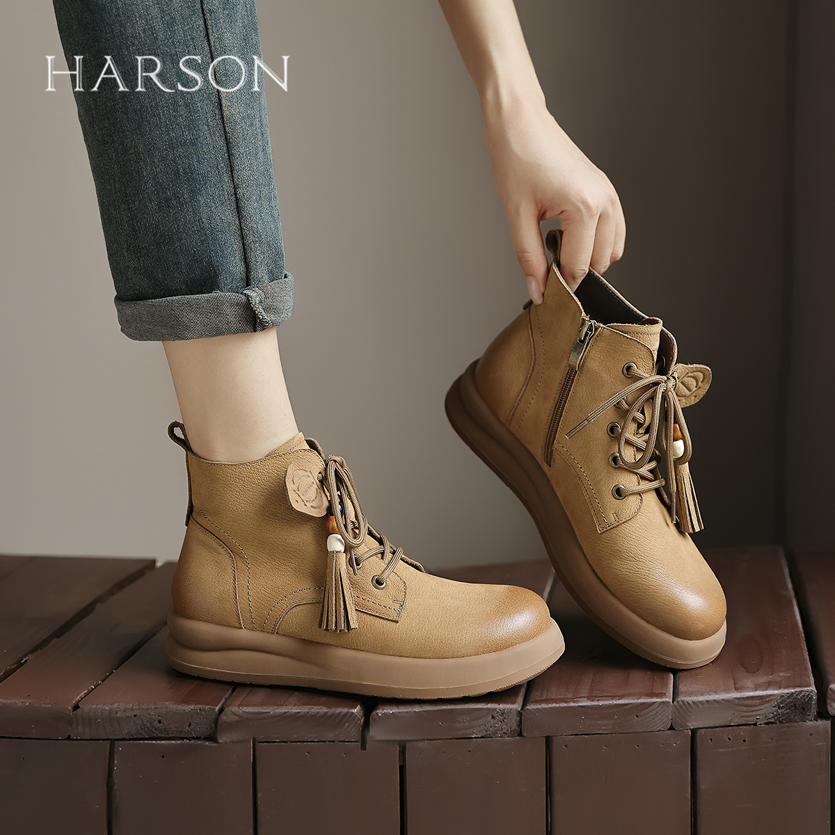 哈森复古马丁靴女鞋2025秋季新款英伦风低帮厚底短靴圆头美拉德靴