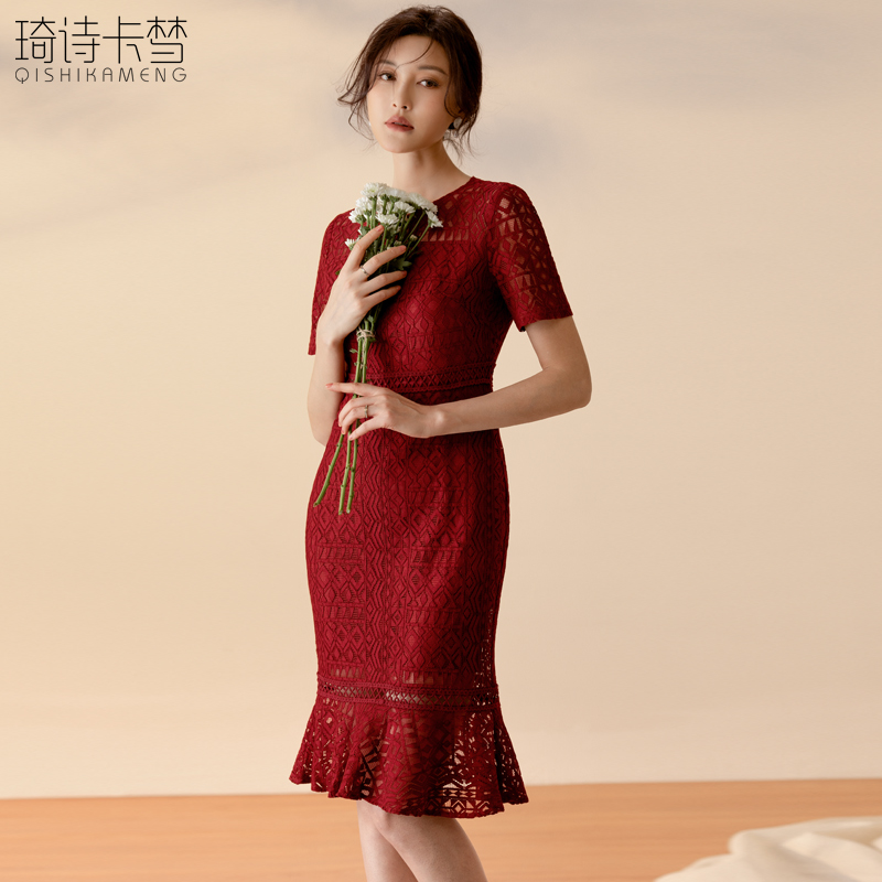 蕾丝连衣裙女装新款夏季裙子气质性感修身显瘦小个子显高鱼尾裙