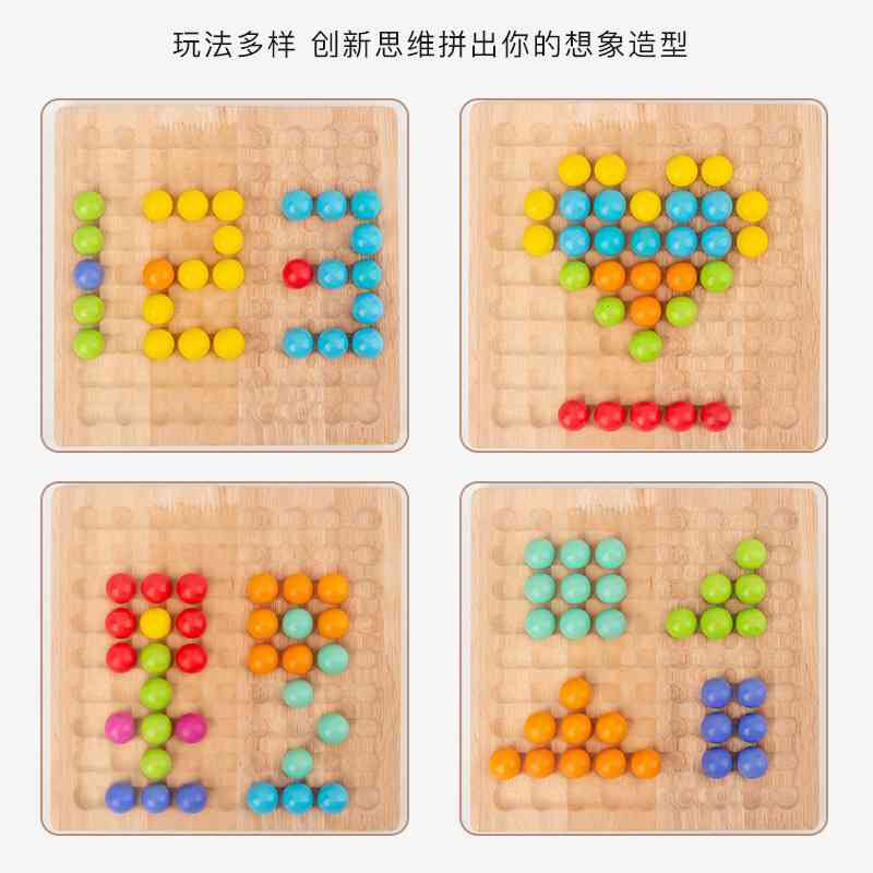 木制夹珠子玩具消消乐二合一 注意力专注力训练早教益智儿童教具