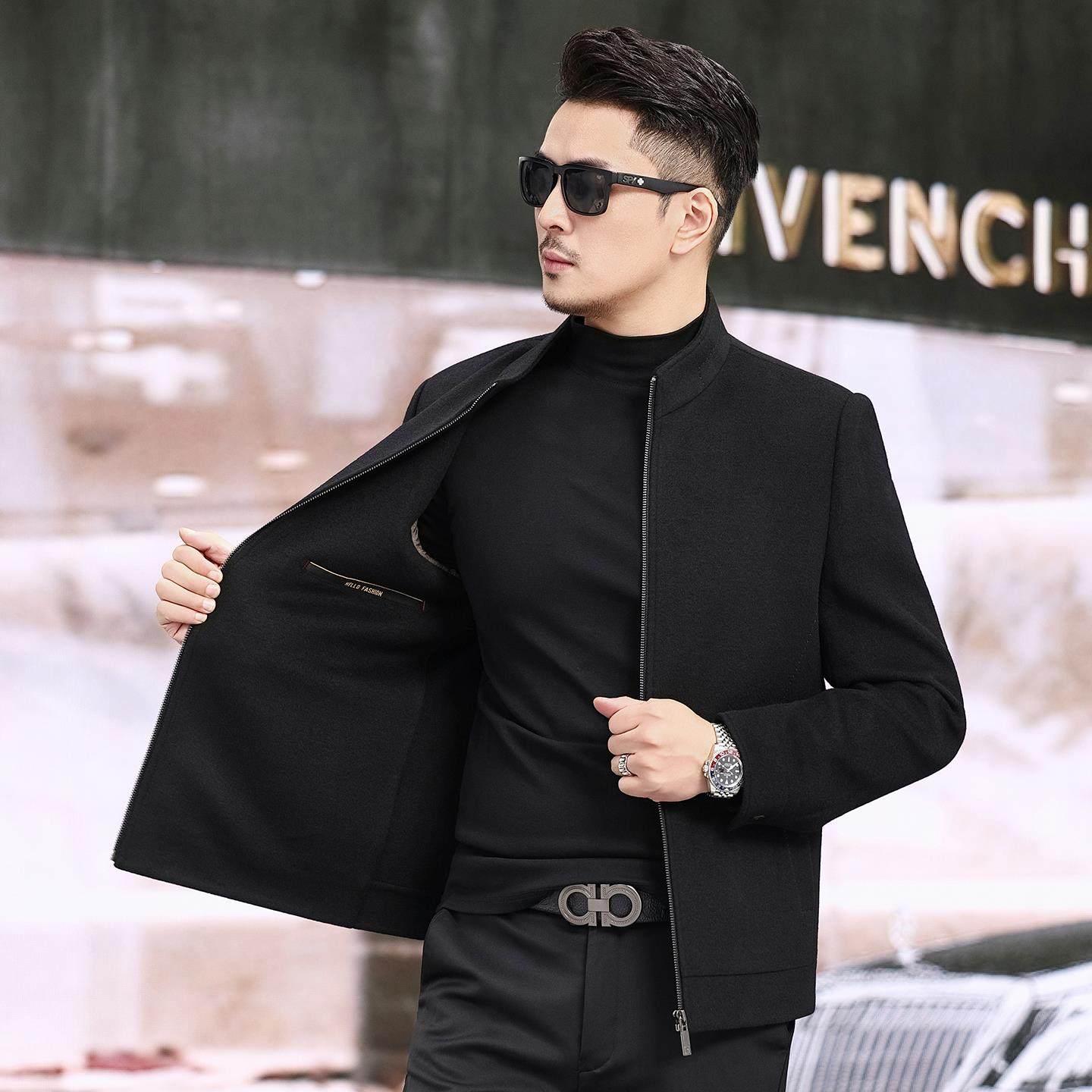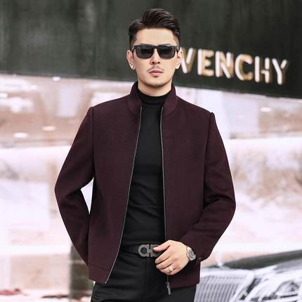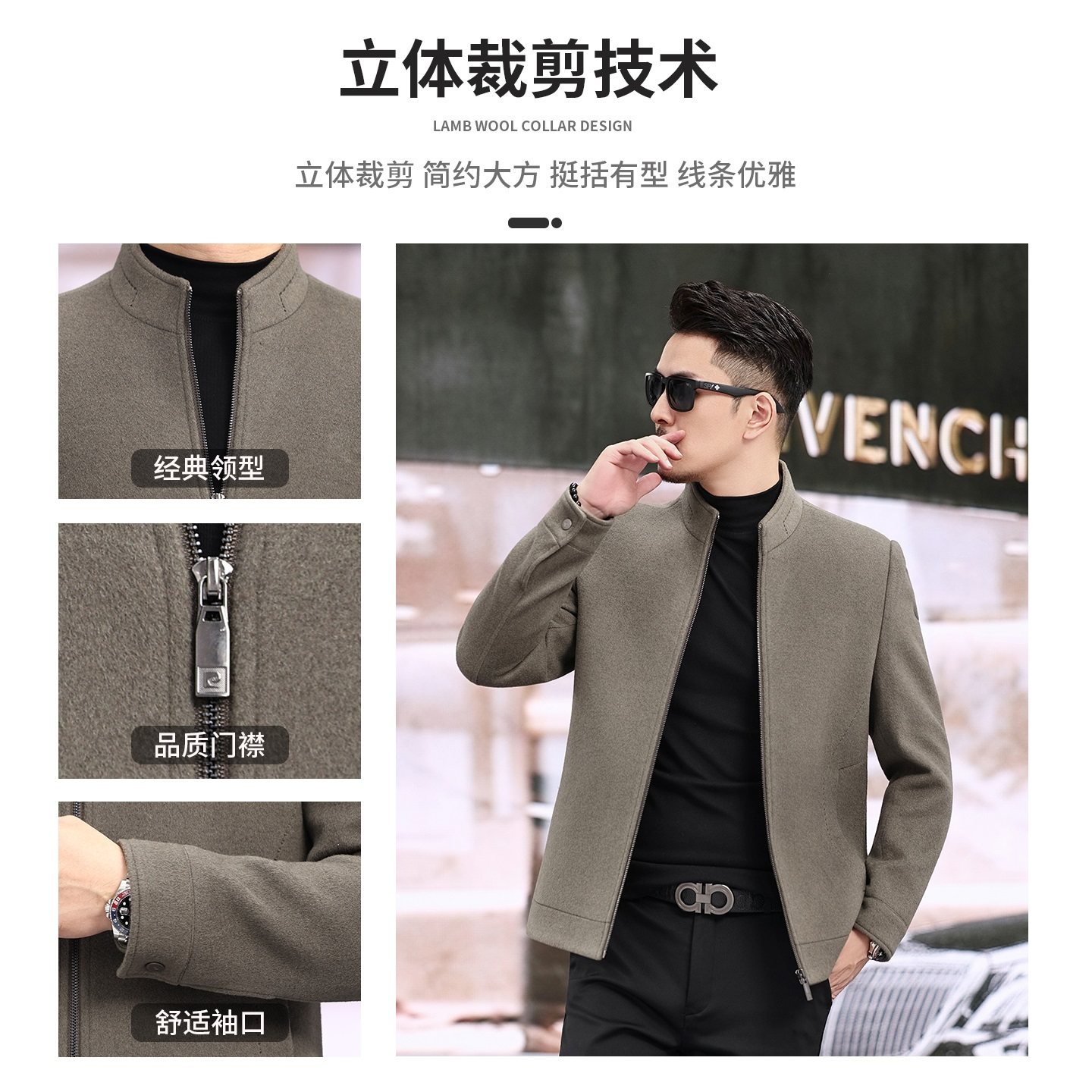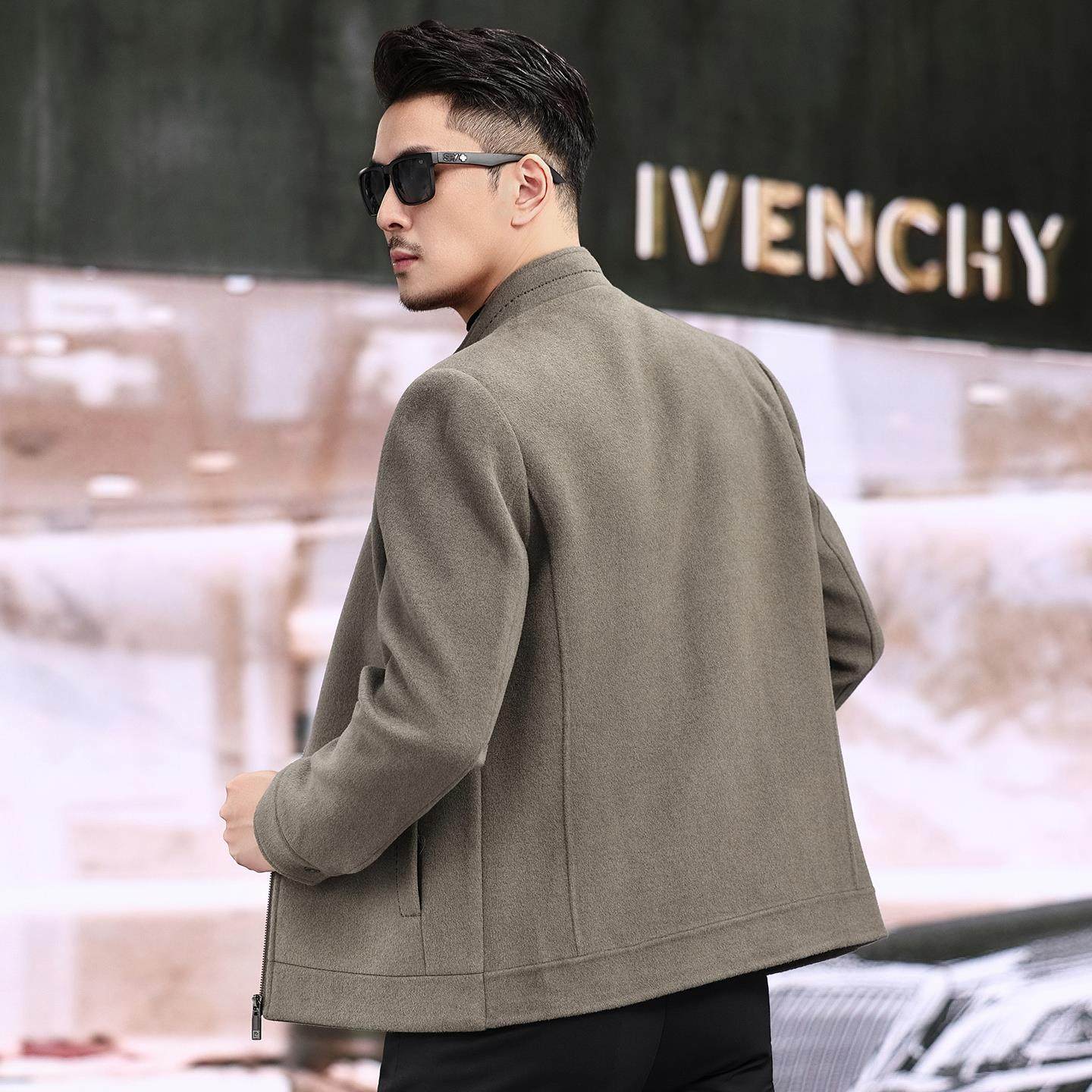 罗蒙立领羊毛夹克男高端商务婚宴中年爸爸上衣秋冬季行政毛呢外套