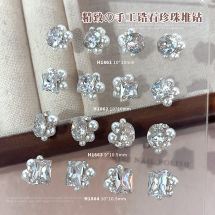 新款美甲饰品锆石镶珍珠堆钻立体圆形鸽子蛋直角成品钻球指甲装饰