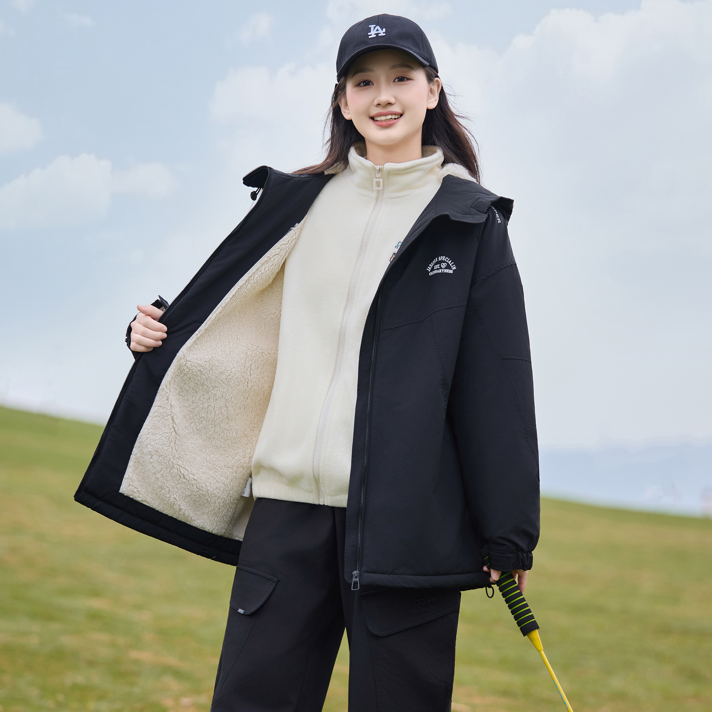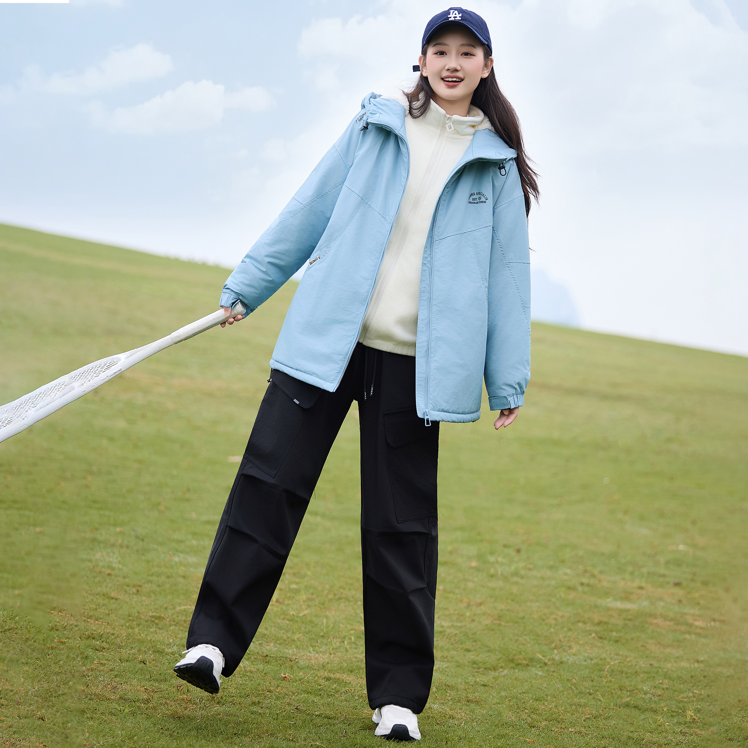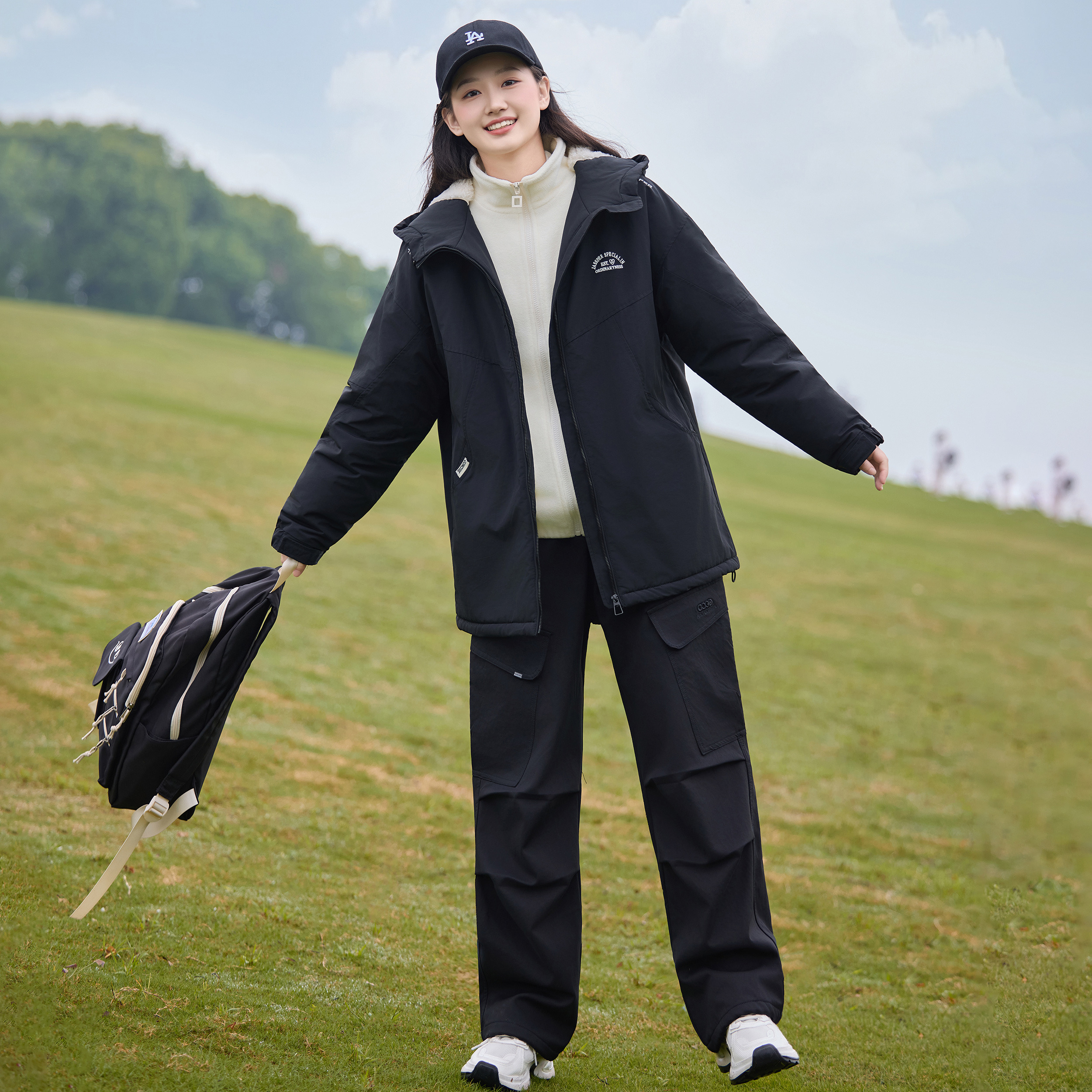 学生冬装外套加绒棉服少女羊羔绒风衣2025冬季青少年加厚长款棉袄