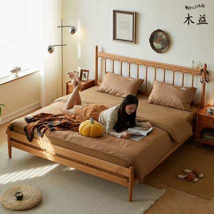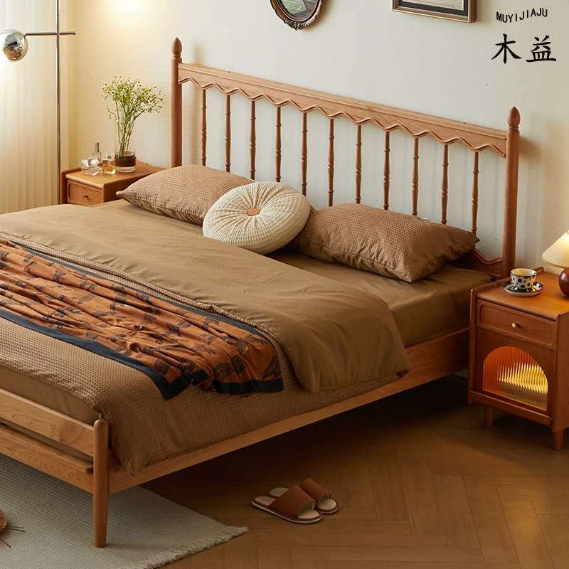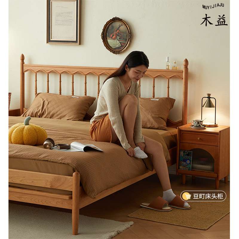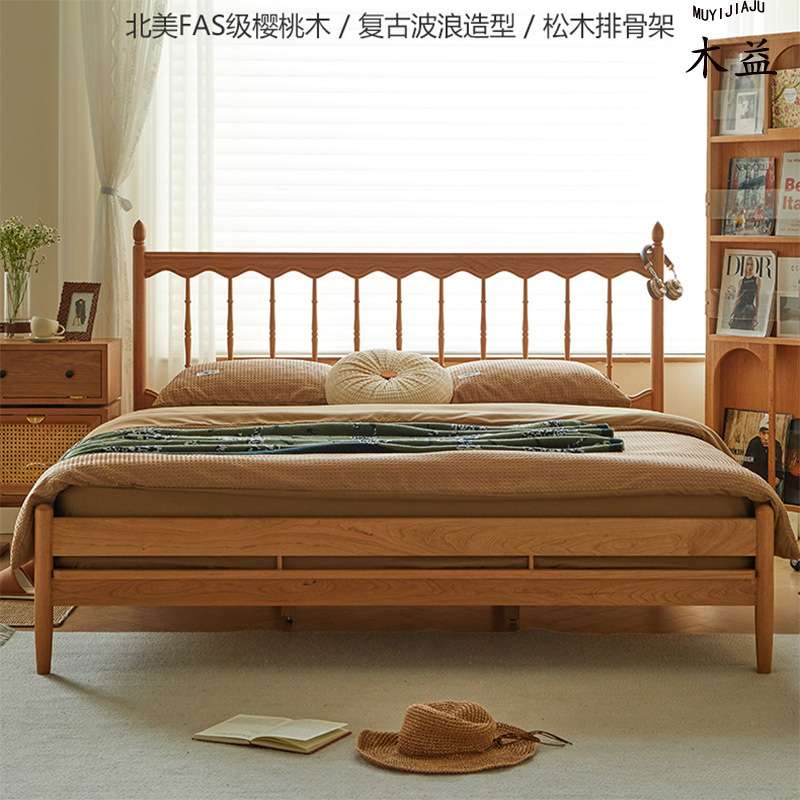 实木温莎床樱桃木极简家具北欧中古复古主卧1.8米双人床家用简约