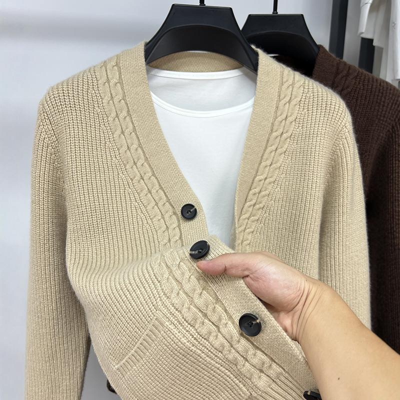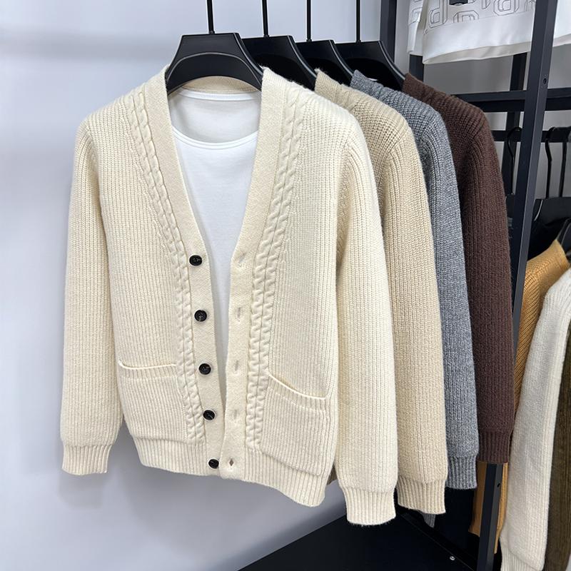 超好看的提花针织开衫男装毛衣外套秋冬纯色V领线衣潮流休闲外穿