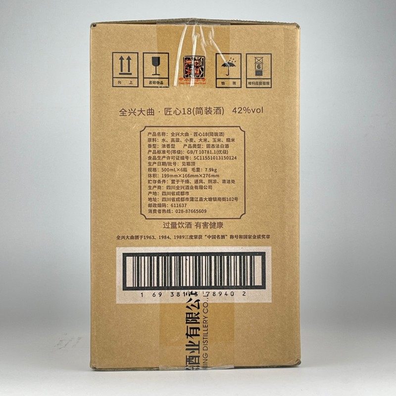 四川全兴大曲匠心18浓香型52度42度简装光瓶白酒500毫升*2瓶/6瓶