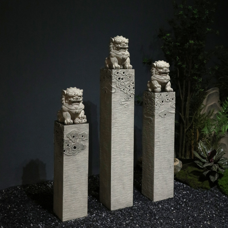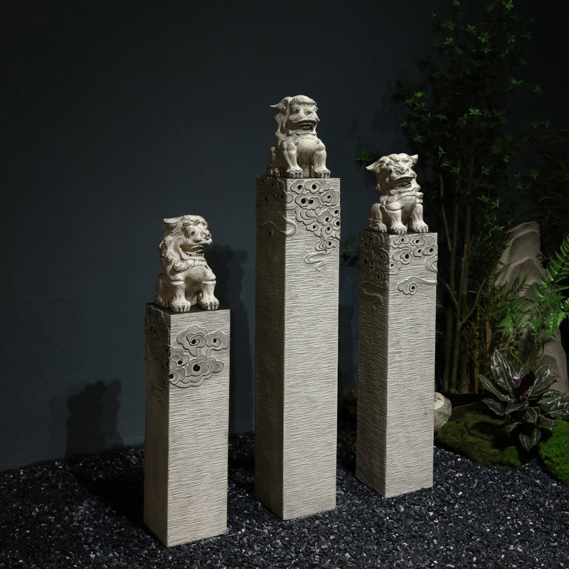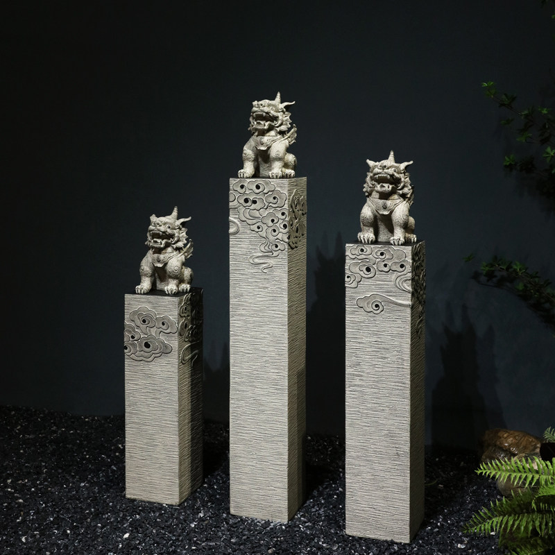 新中式户外别墅庭院仿石雕狮子拴马柱客厅玄关落地大型装饰品摆件
