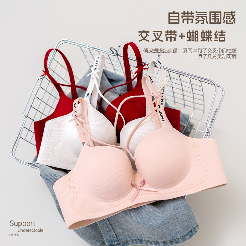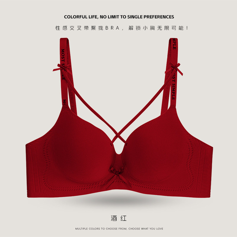 红色本命年加厚6cm内衣女小胸聚拢显大超厚馒头杯字母肩带文胸罩