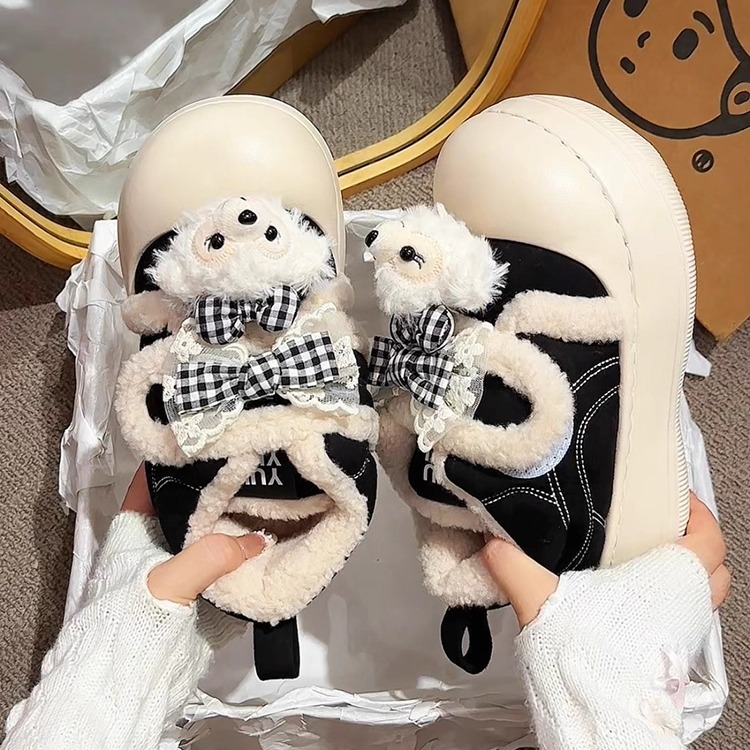厚底鞋子女2025新款爆款毛毛鞋女外穿秋冬季超火增高休闲运动棉鞋