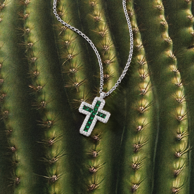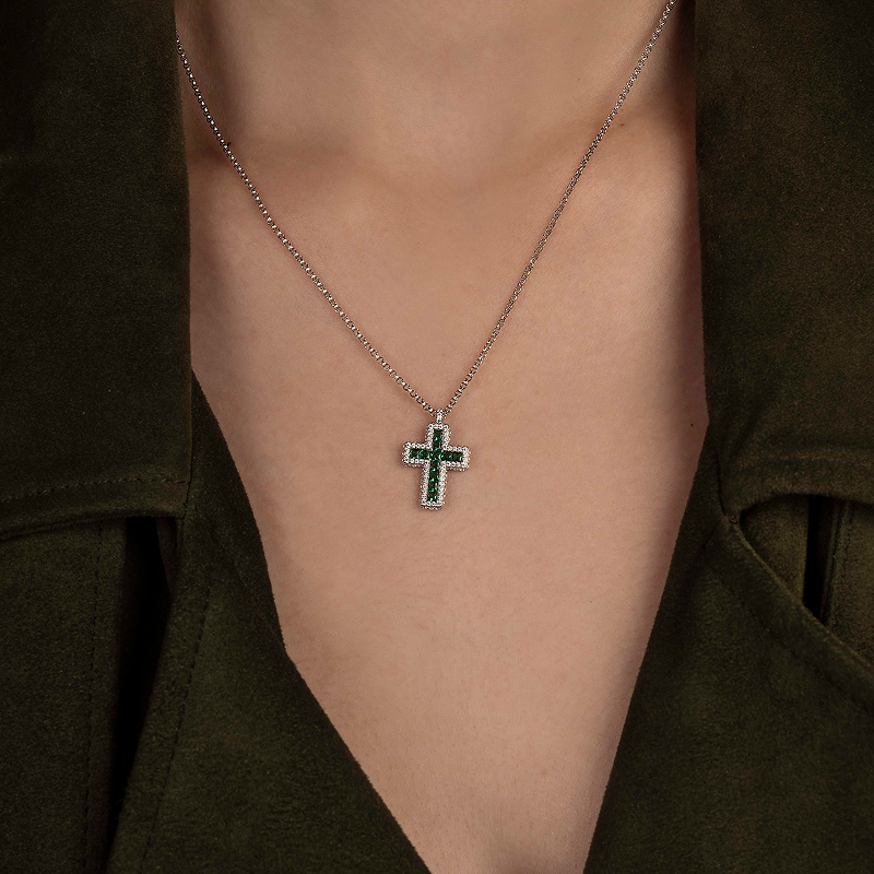 APM Monaco绿色密镶十字架可调节项链撞色混搭毛衣链送人新年礼物