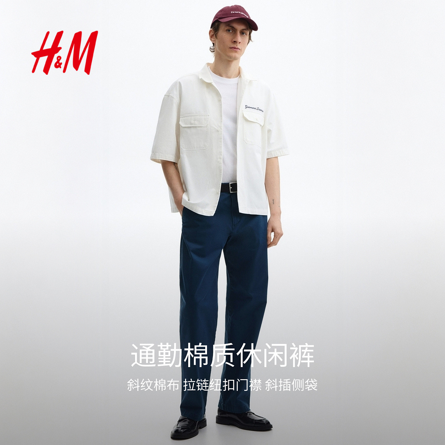 HM男装休闲裤2026春季新款时尚通勤简约棉质潮流休闲长裤1311239