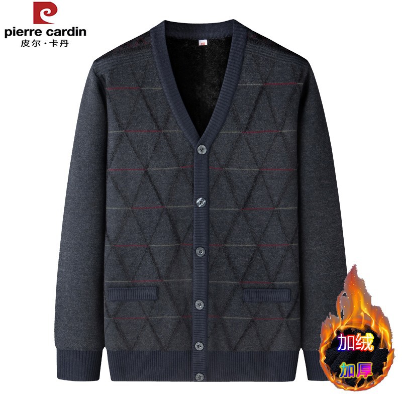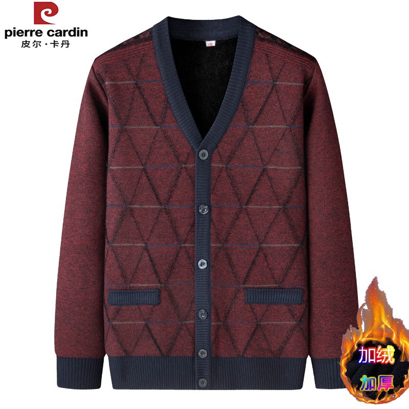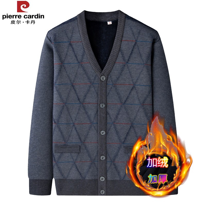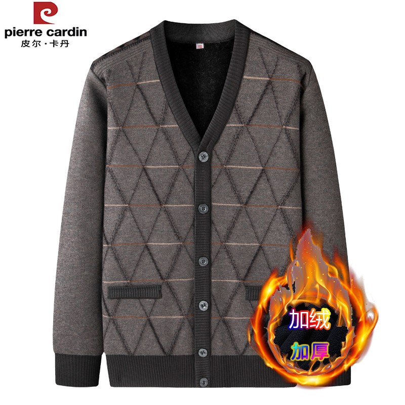 皮尔卡丹中老年加绒针织开衫