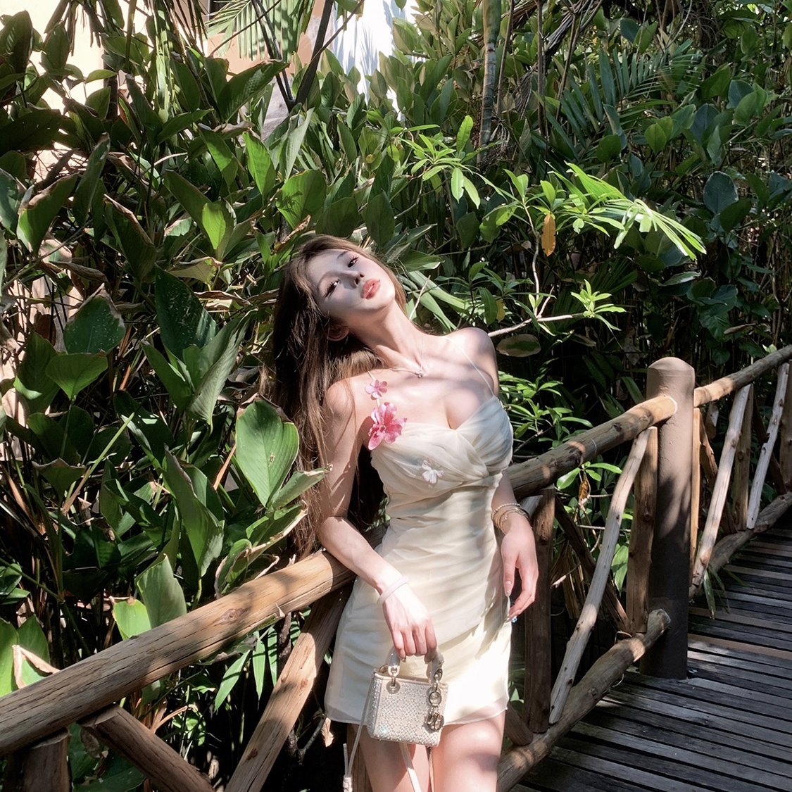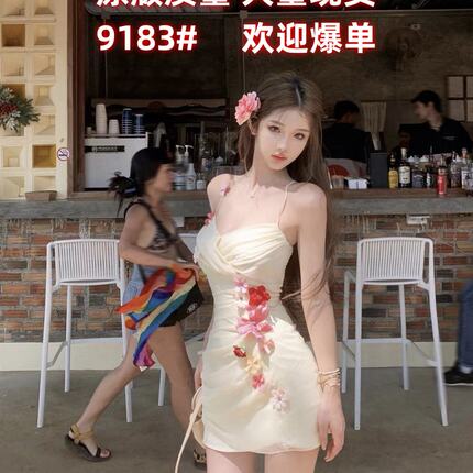 JMSHOP 缪斯繁花 花朵连衣裙女夏季设计感度假裙吊带裙短款裙子