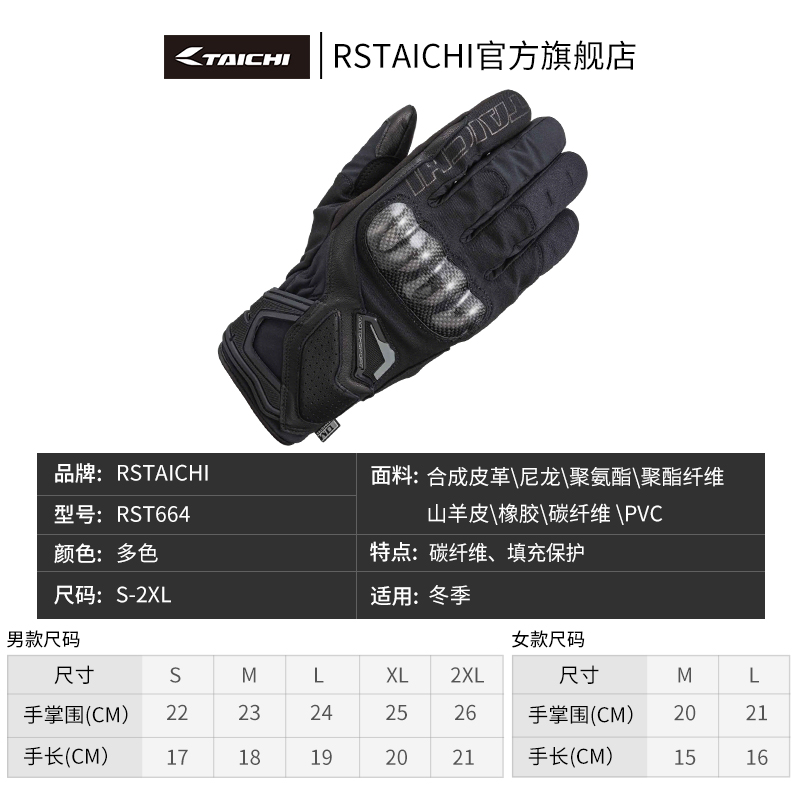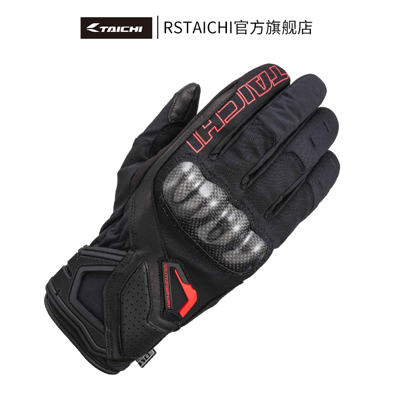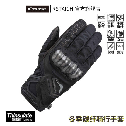 RS TAICHI摩托车骑行手套冬季防水保暖防风防水碳纤维触屏手套男