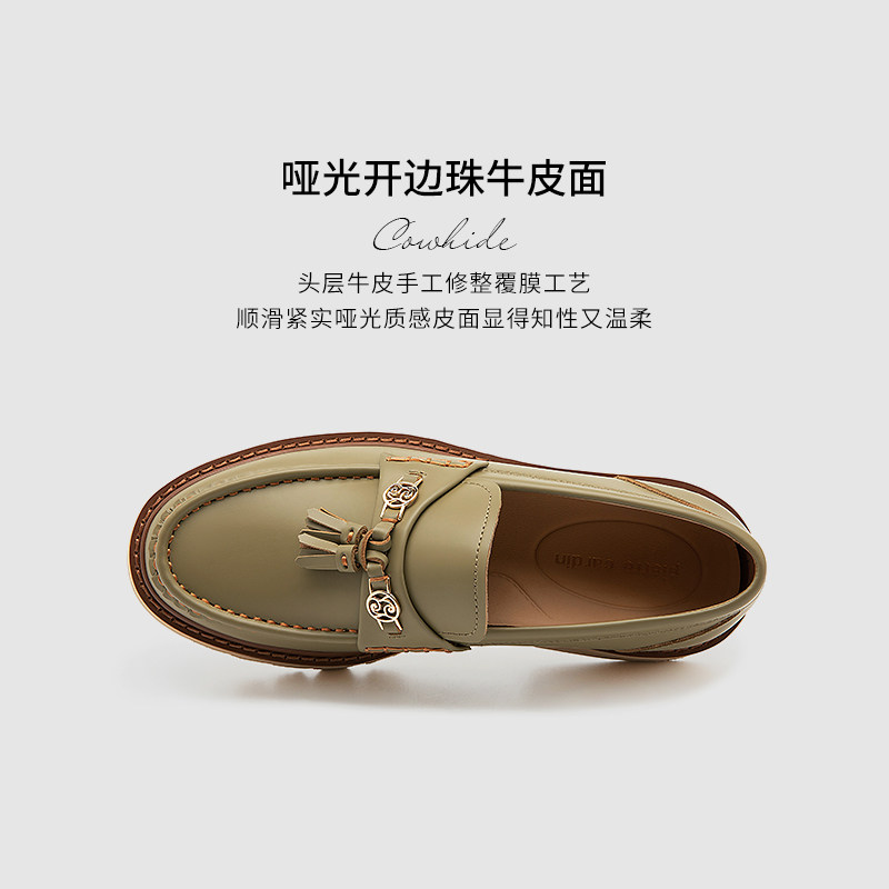 Pierre Cardin/皮尔卡丹女鞋商场同款流苏轻厚底乐福鞋一脚蹬