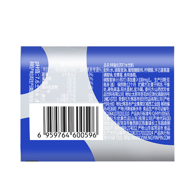 依能锌强化苏打水弱碱性