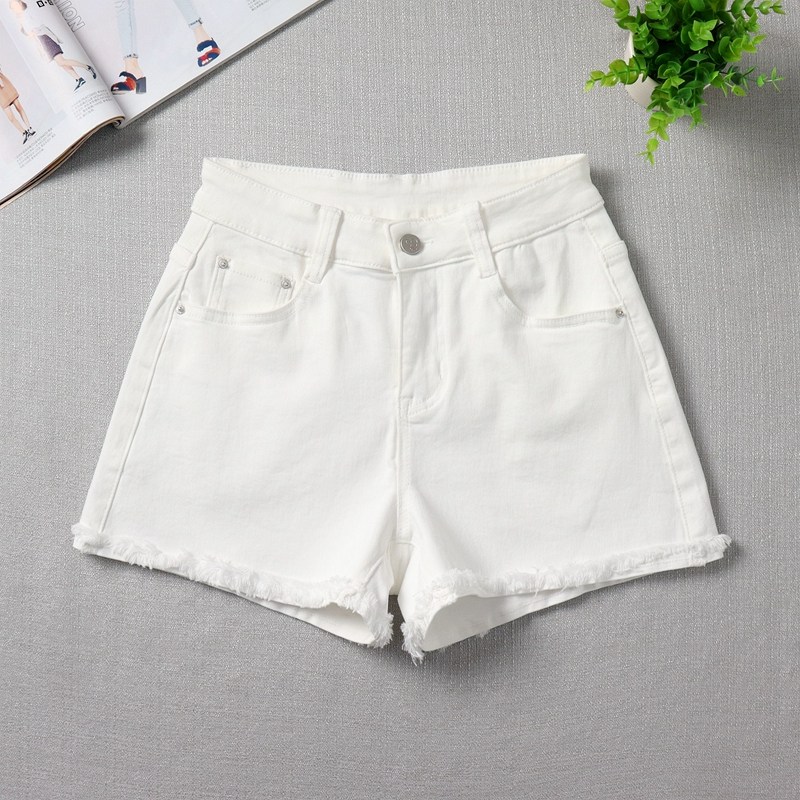 新夏季白色牛仔裤女士短裤弹力宽松毛边热裤舒适柔软高腰韩版显瘦