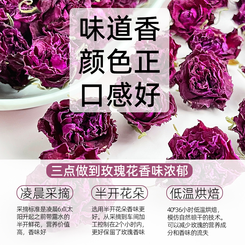 特仑玫瑰泡水平阴玫瑰花茶无硫半开花冠茶冬季重瓣花草茶袋装180g