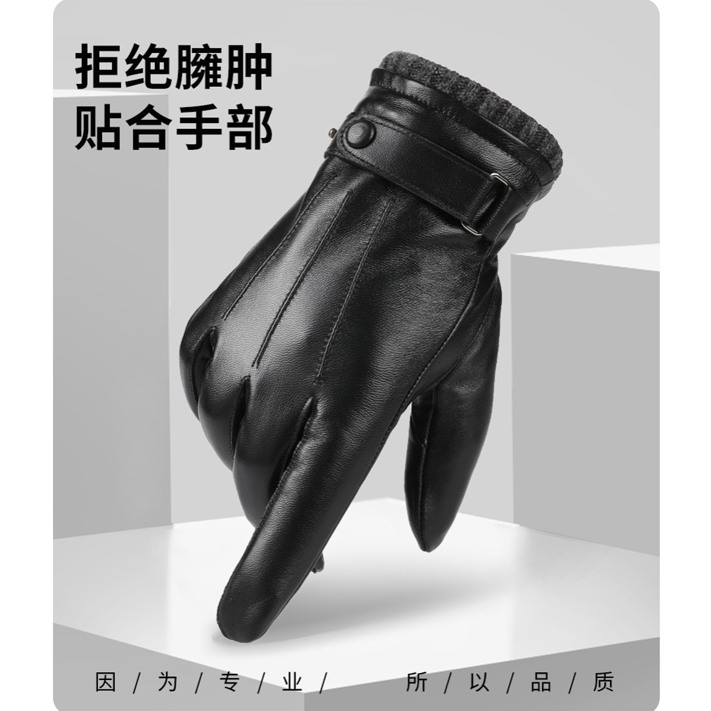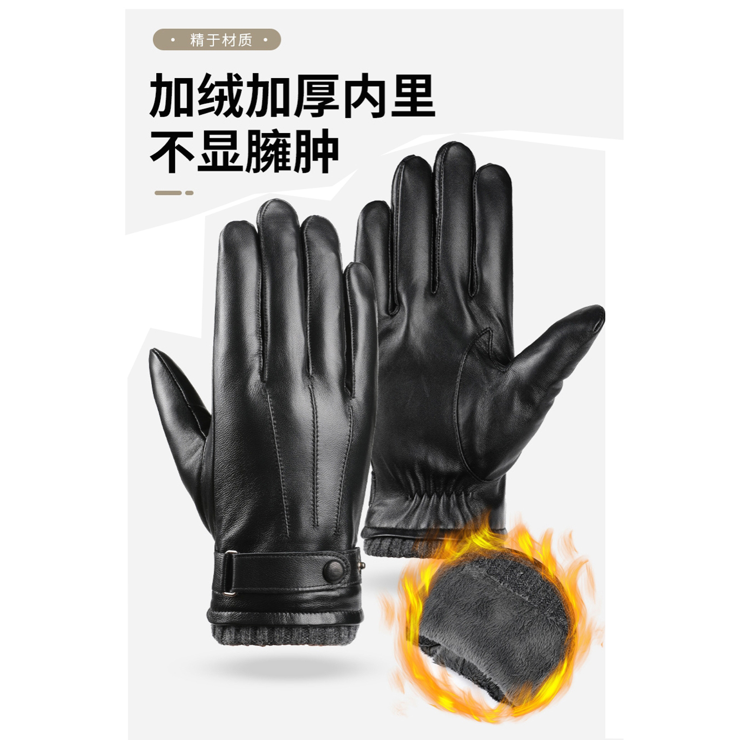 头层羊皮真皮手套全指男士加绒触屏保暖冬季户外骑行开车纯皮