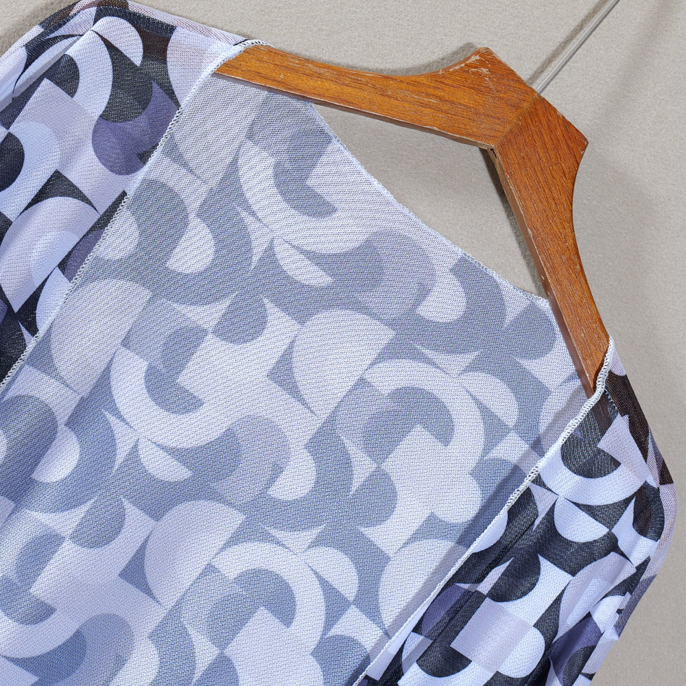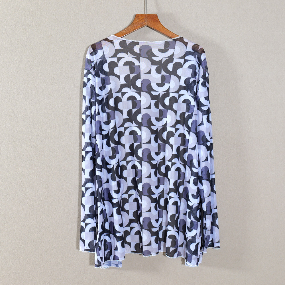 春秋季新款女装中长款印花V领披肩外套长袖上衣服轻薄百搭简约潮