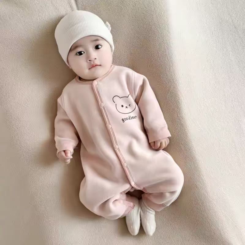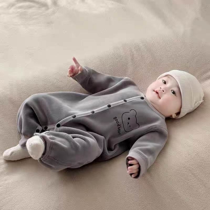 宝宝保暖连体衣春秋冬季加绒哈衣男女小童暖绒外出服婴儿室内爬服