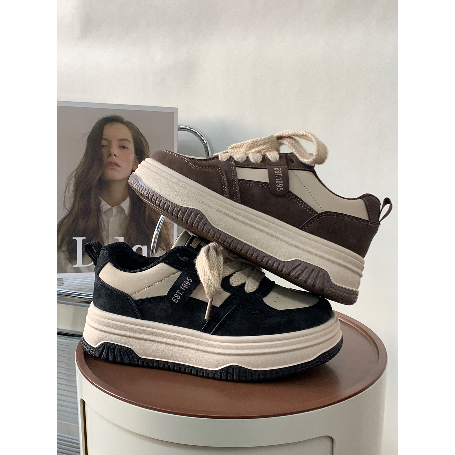 厚底板鞋女款国潮面包鞋