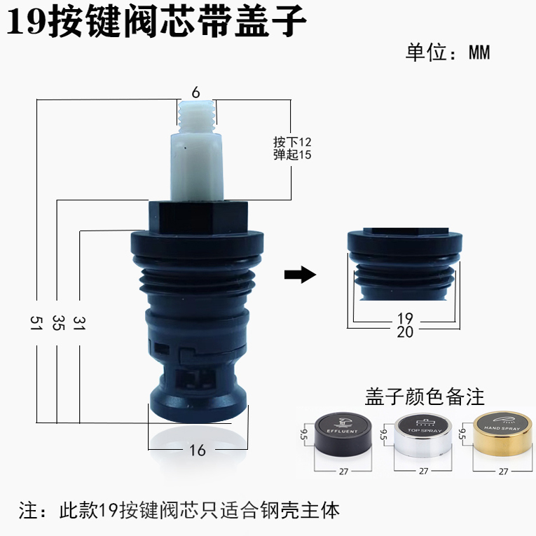 花洒配件按键阀芯智能触控弹跳按钮按压切换漏水回弹开关四档阀芯