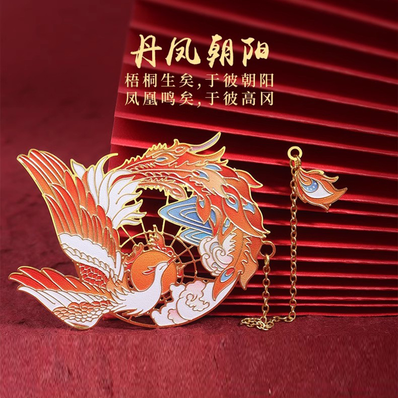 山海经凤凰麒麟金属书签古典中国风文创小礼品古风神兽纪念品礼盒