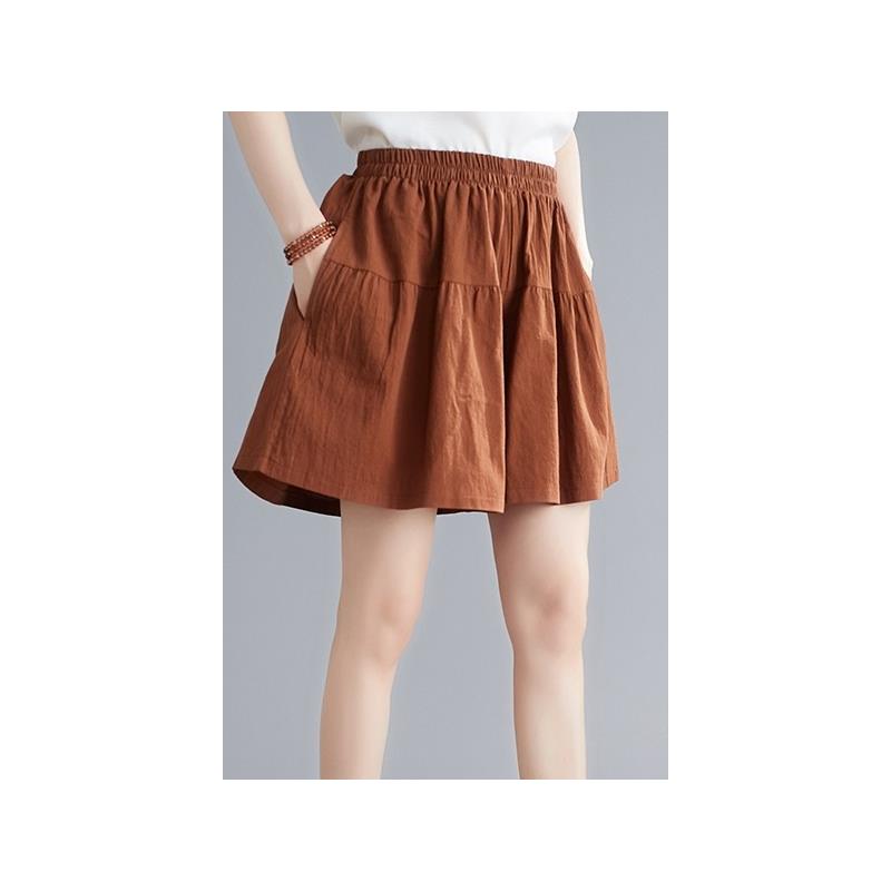 棉麻短裤女夏2024新款韩版大码胖mm宽松纯色百搭显瘦A字阔腿裤裙