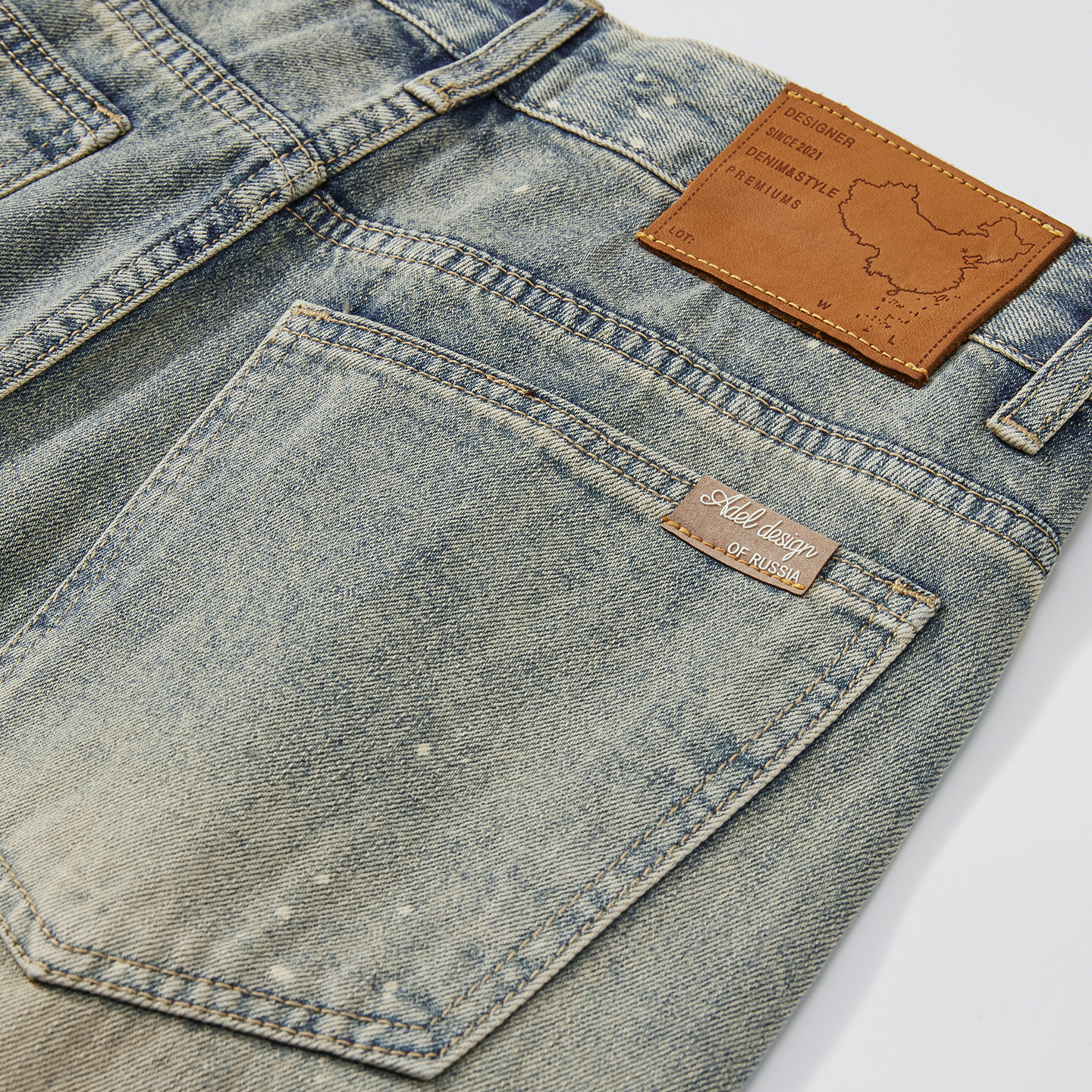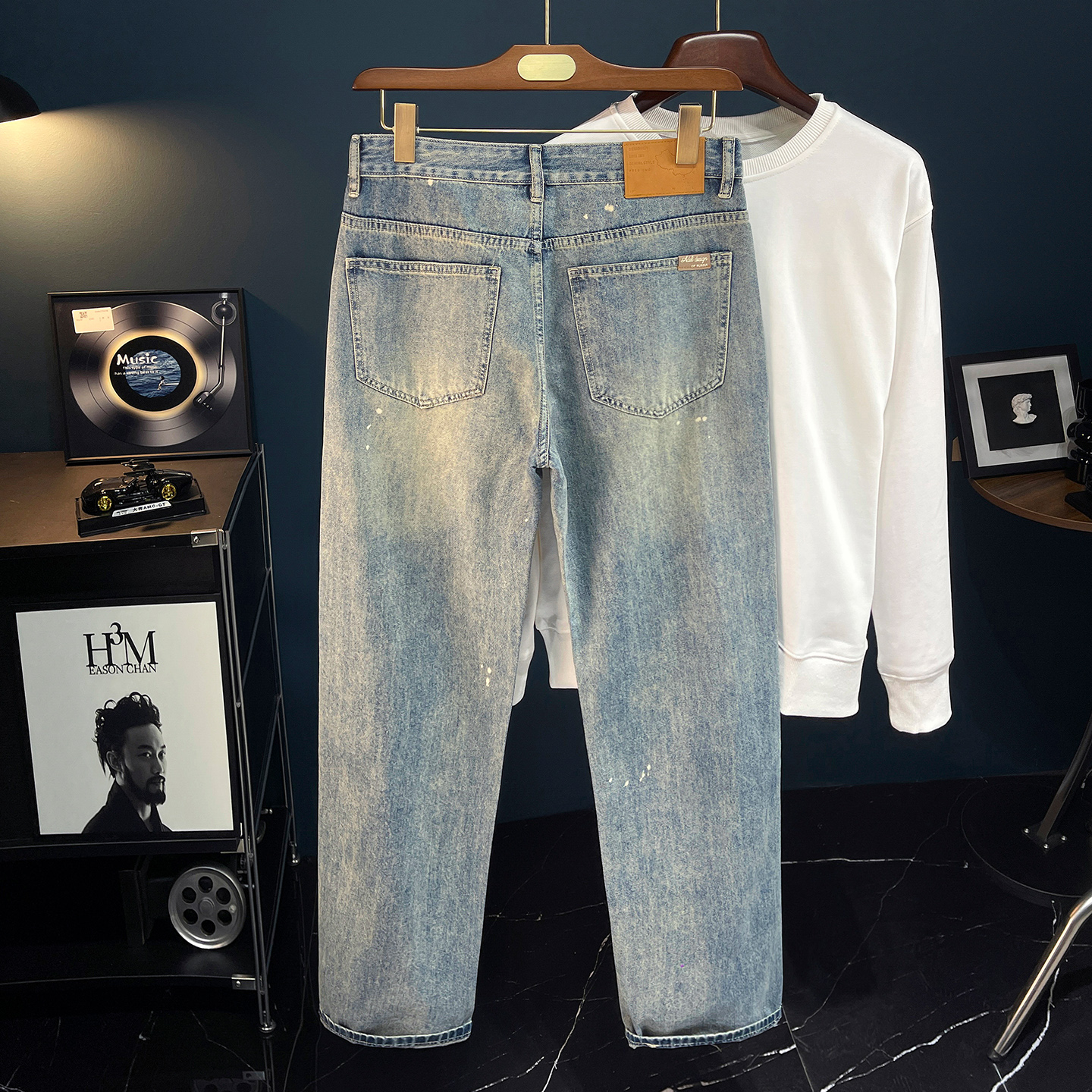 美式复古加绒泼墨牛仔裤男款直筒裤2025秋冬款宽松潮牌痞帅长裤子
