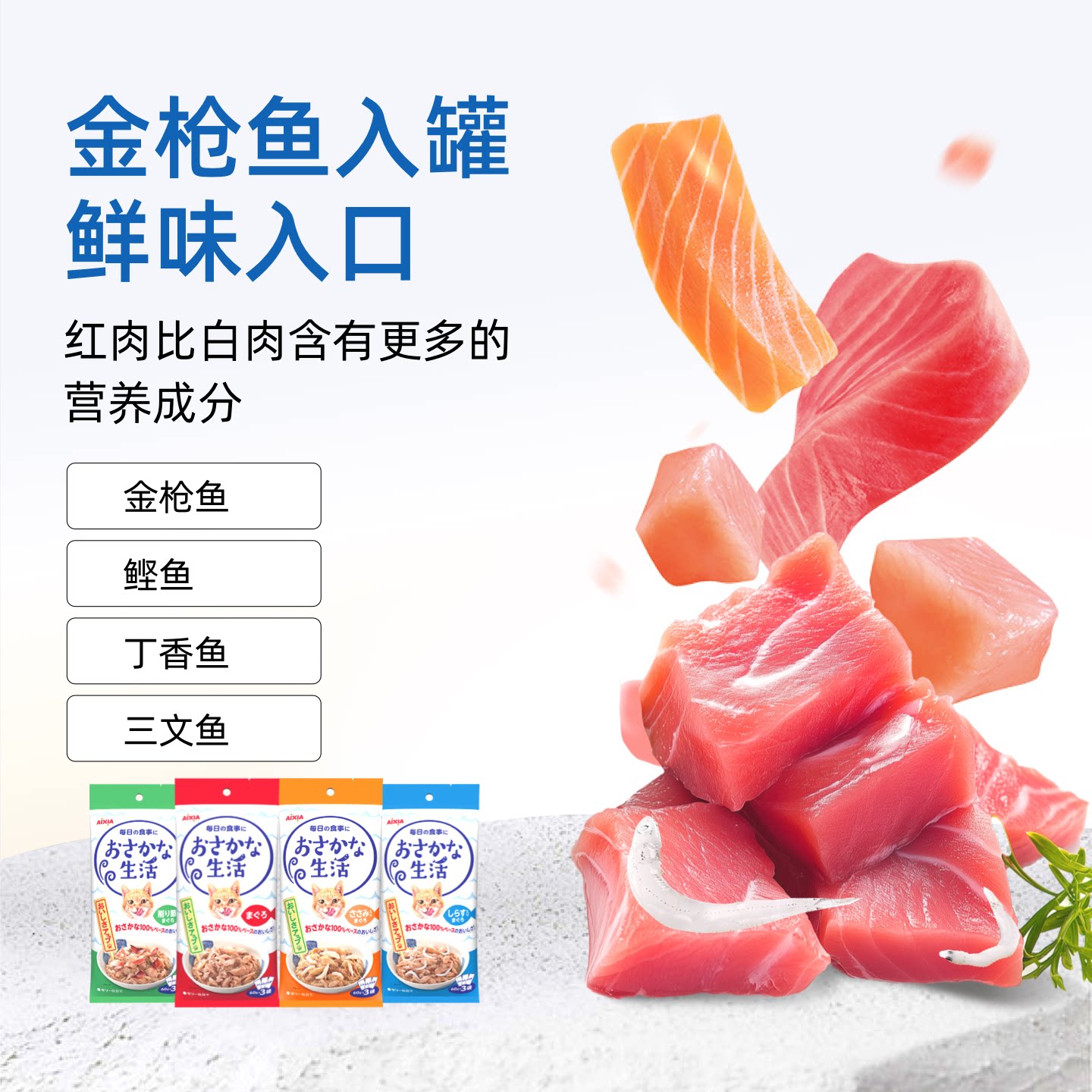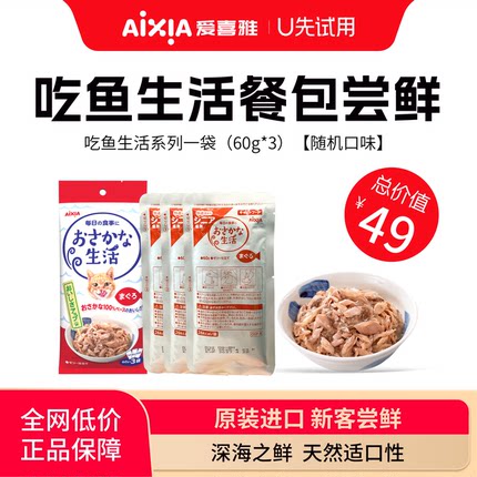【U先试吃】爱喜雅进口吃鱼生活猫湿粮餐包零食罐低磷金枪鱼营养