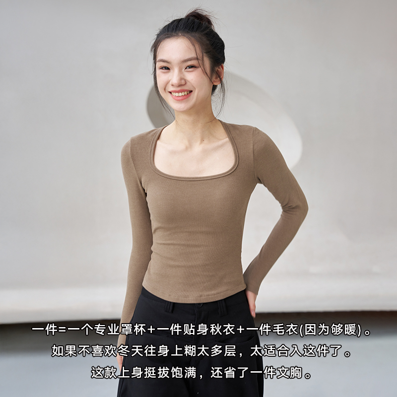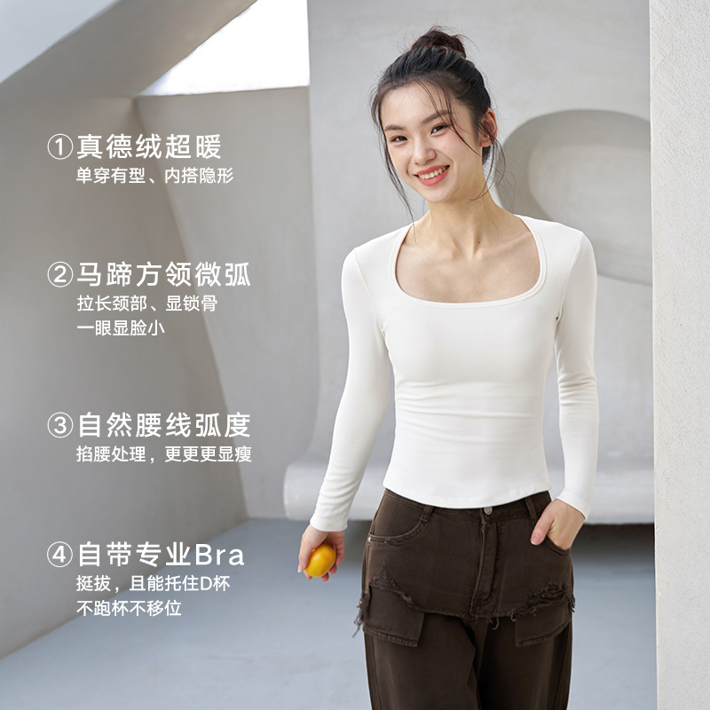 德绒打底衫女内搭秋冬2025年新款秋衣带胸垫保暖内衣长袖t恤上衣