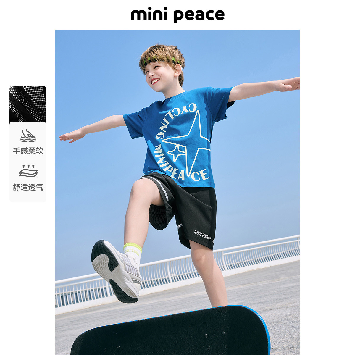 MINIPEACE太平鸟童装男童运动裤子夏季儿童短裤透气洞洞布五分裤