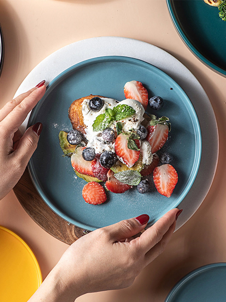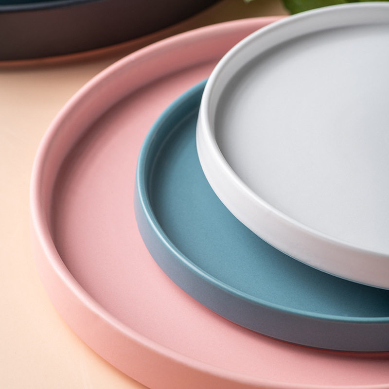 北欧哑光陶瓷盘牛排西餐盘披萨盘花盆托盘创意早餐平盘沙拉水果盘
