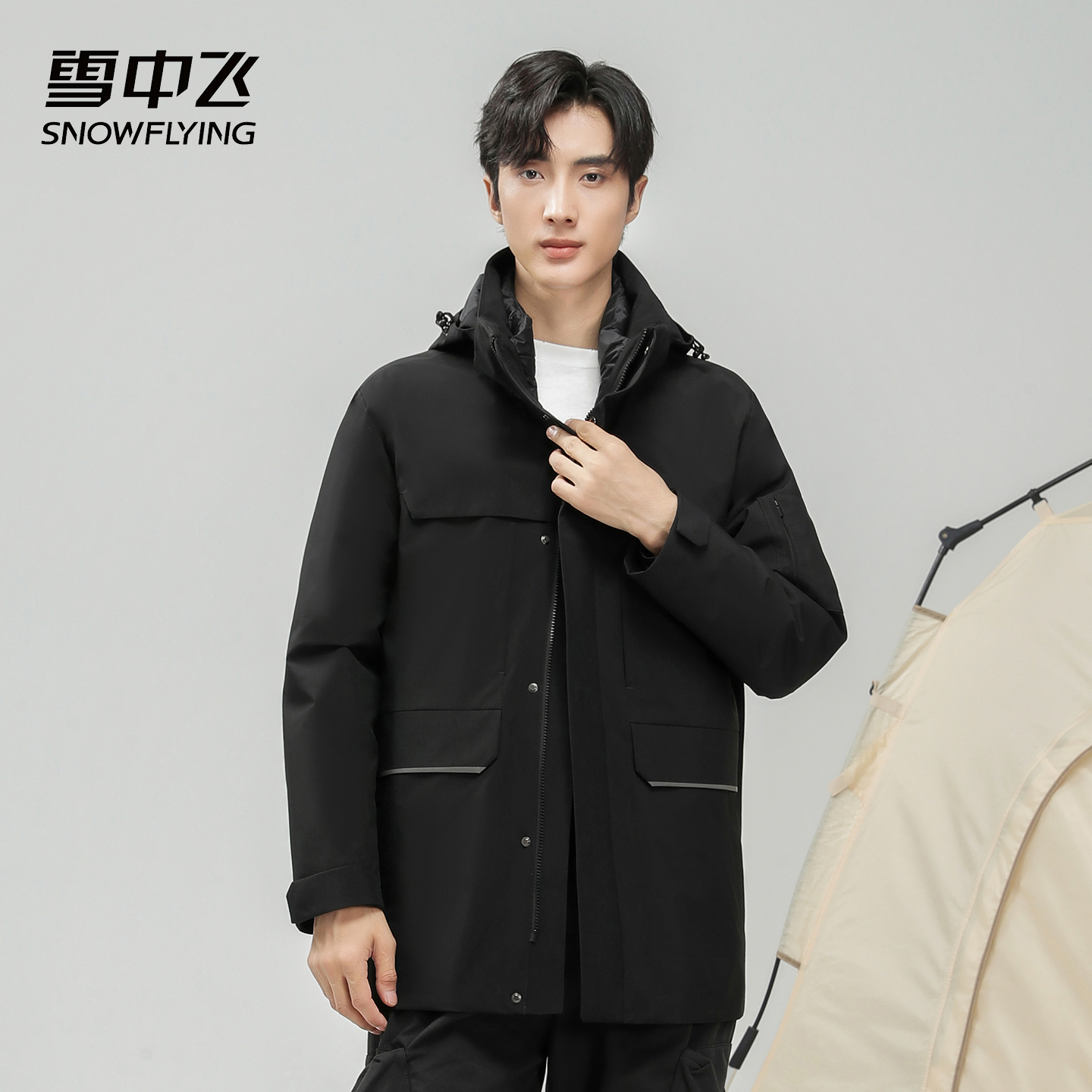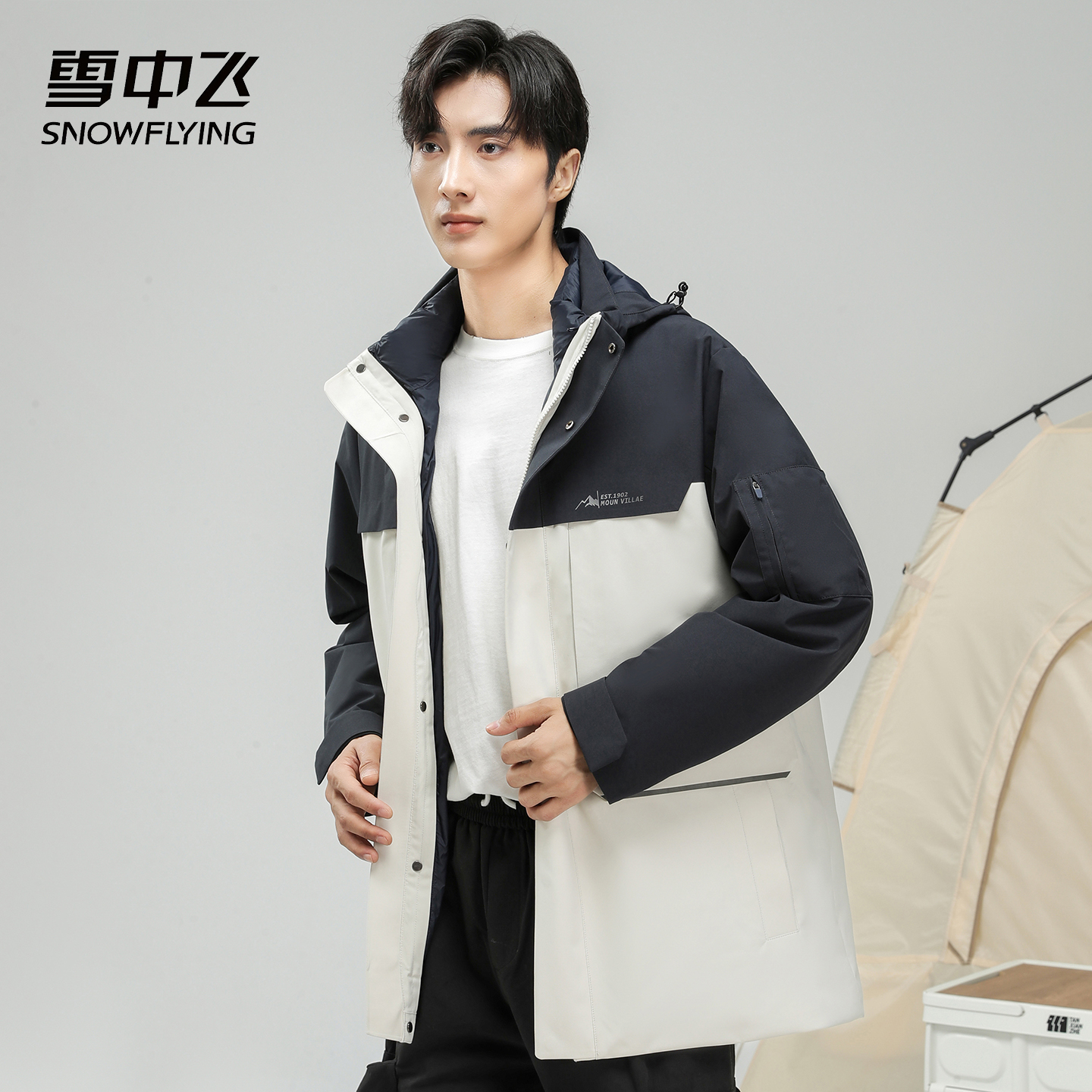 雪中飞SNOWFLYING三合一90鸭绒内胆可拆卸连帽抗寒保暖夹克羽绒服