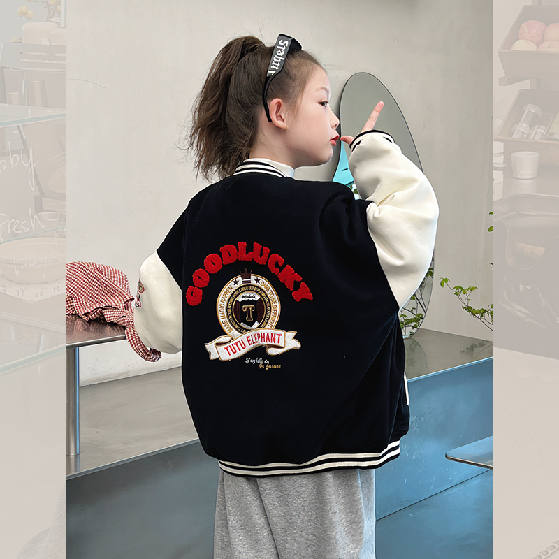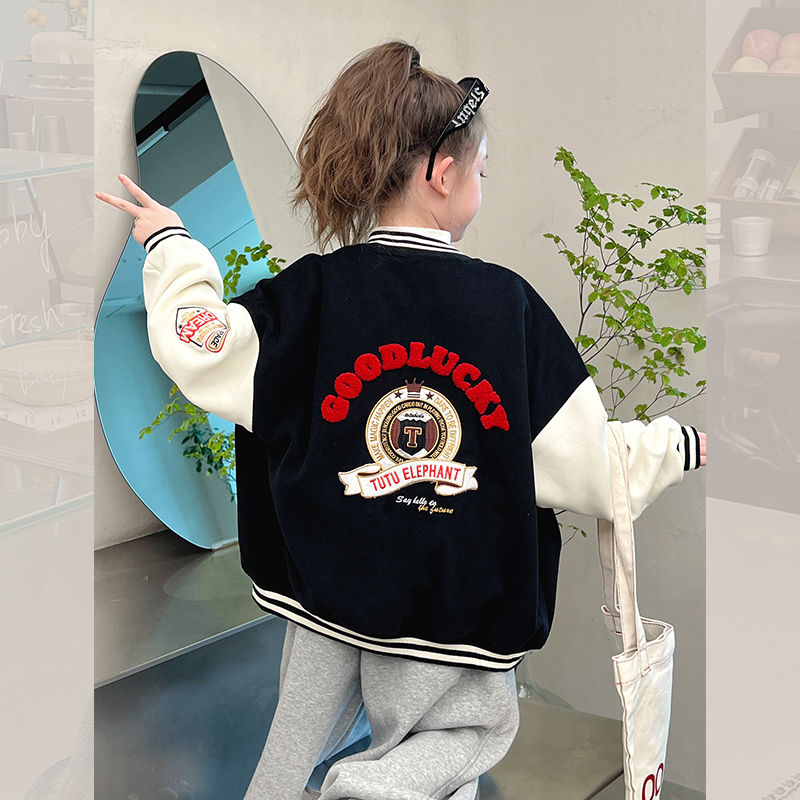 加厚女童夹棉棒球服儿童洋气运动外套大童装棉衣夹克2024冬装新款