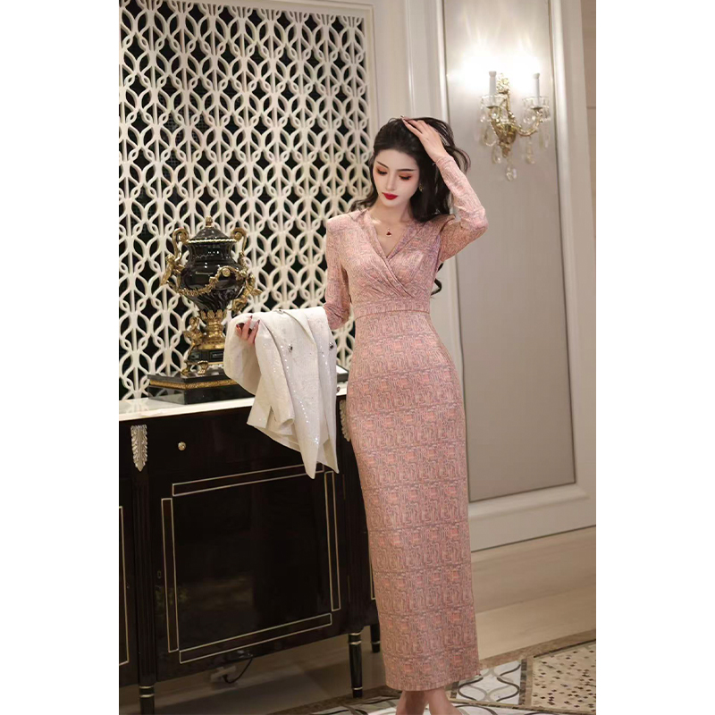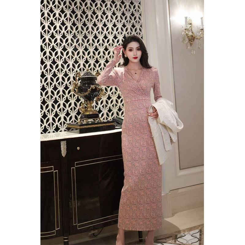 尤克菲儿 高定轻奢磨毛针织提花气质优雅温柔修身显瘦连衣裙
