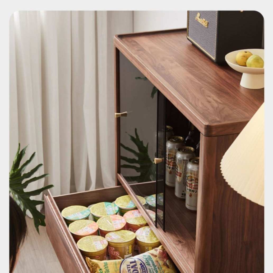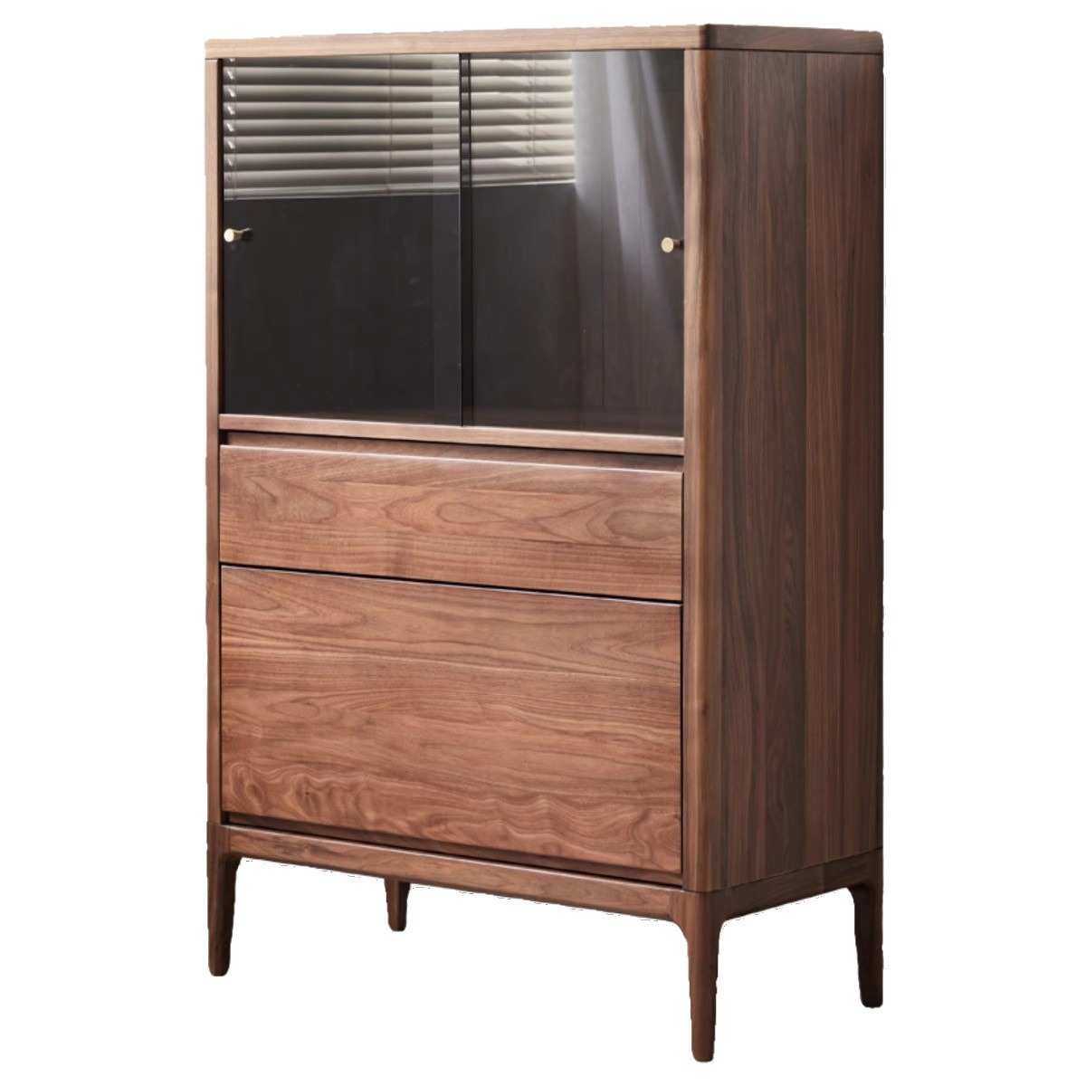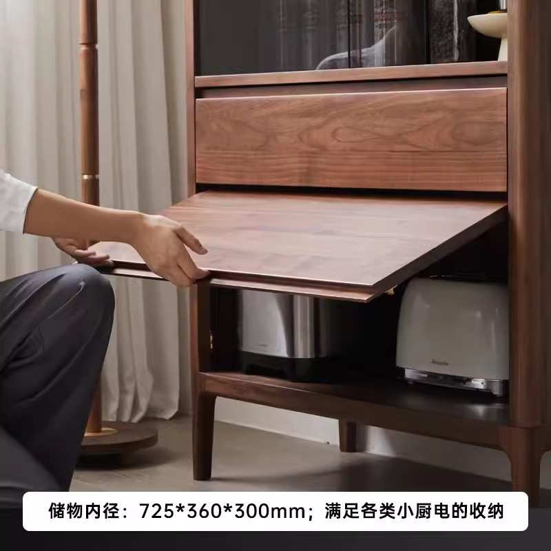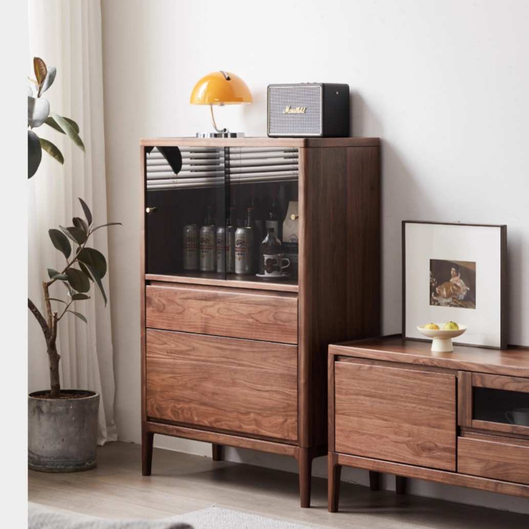 黑胡桃全实木酒柜客厅电视边柜樱桃木沙发边柜茶水橱现代简约书柜