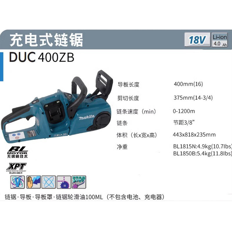 牧田电链锯DUC400ZB园林冰雕木雕根雕16寸无刷电机36V充电式电锯