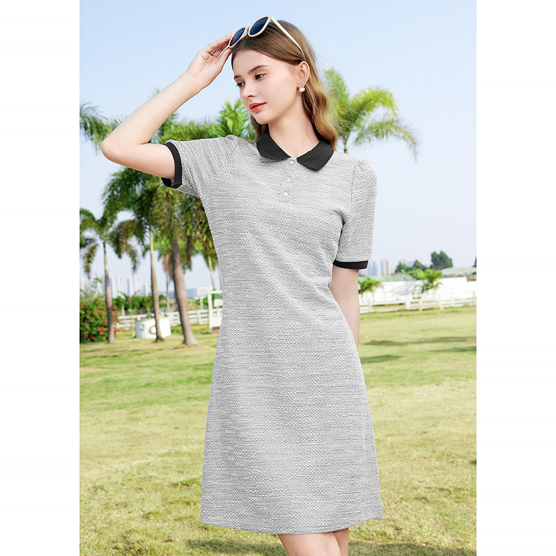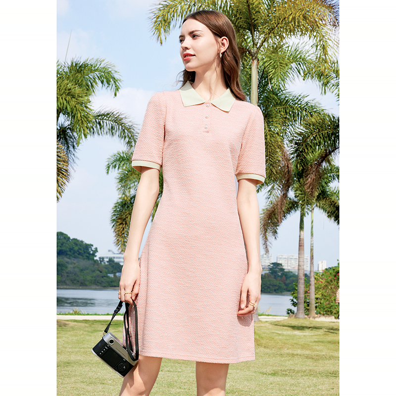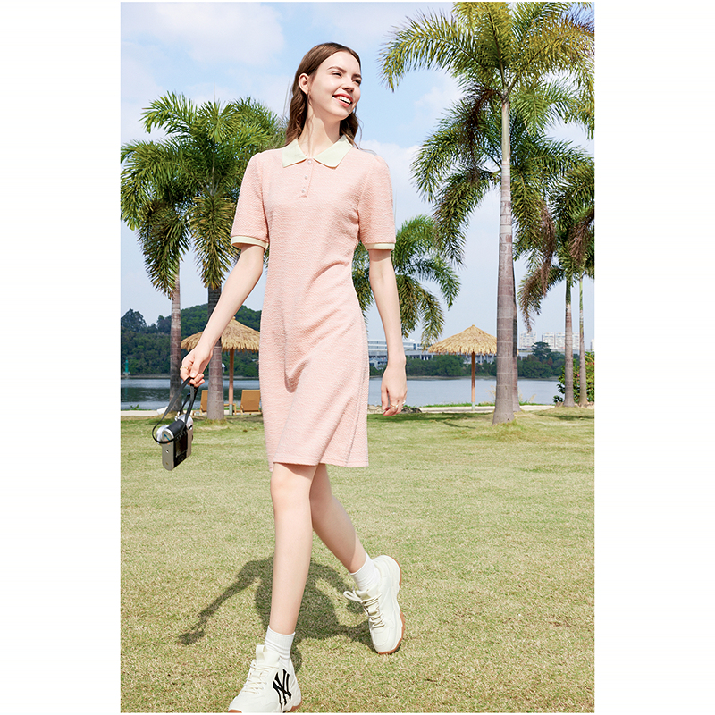 betu百图女装2024夏季新款收腰显瘦Polo领休闲减龄运动风连衣裙