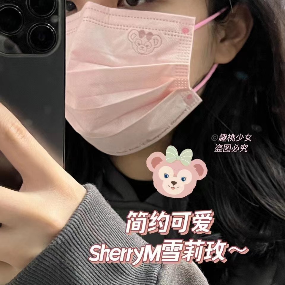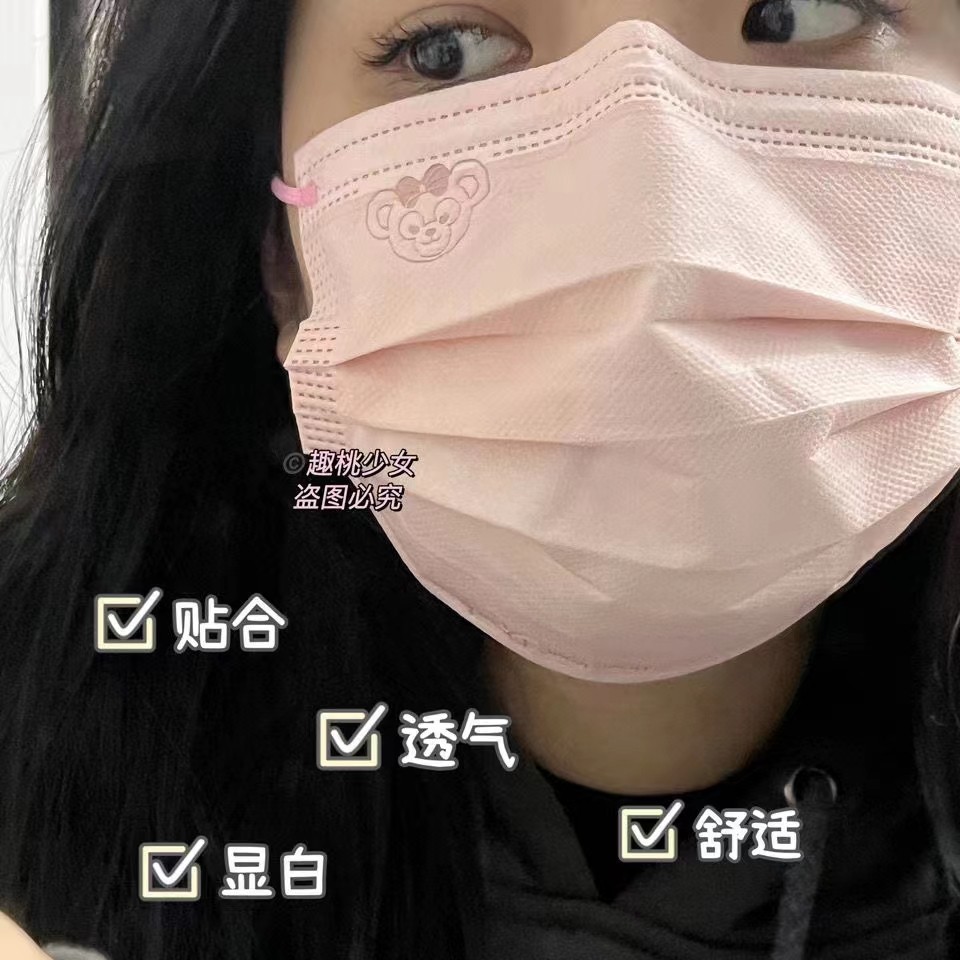 雪莉玫口罩粉色迪士尼高颜值可爱风女生卡通印花夏季薄款显白夏天