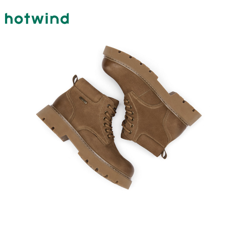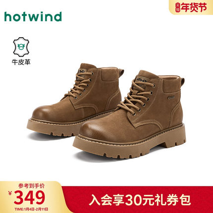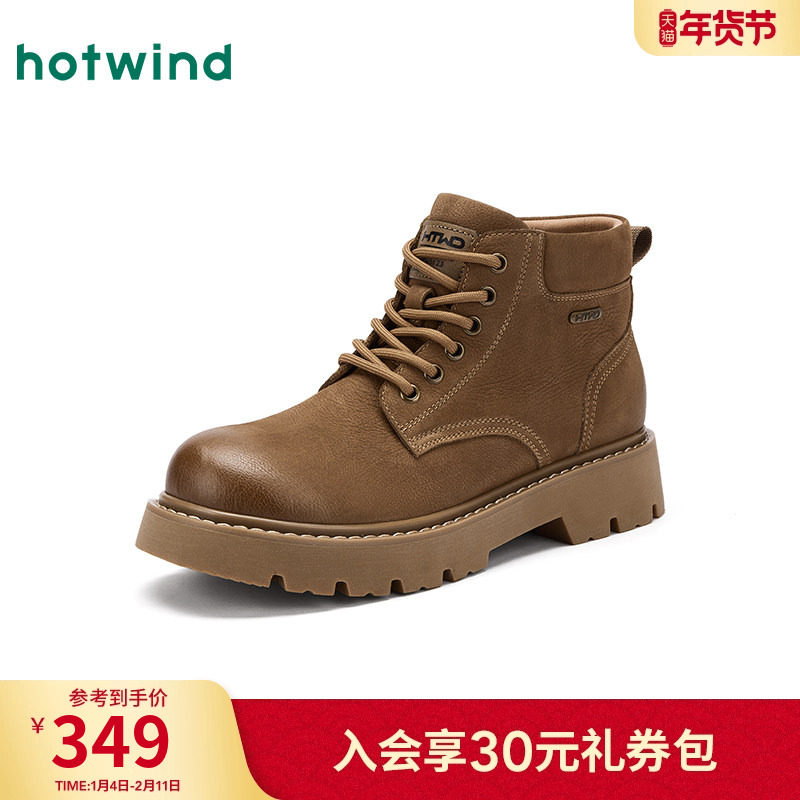 热风男鞋2025年冬季新款男士时尚休闲靴潮流舒适黄色百搭马丁靴子