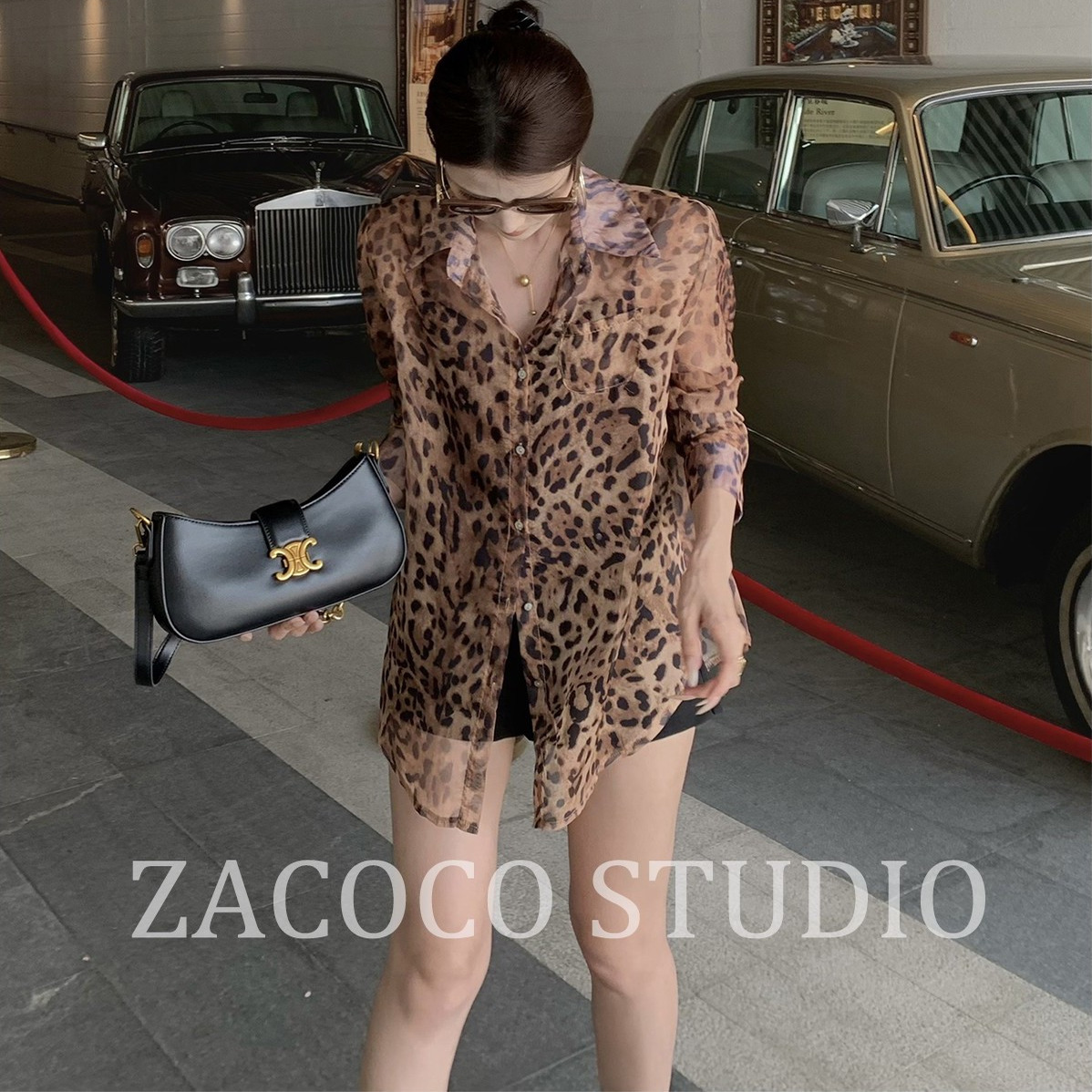 2025秋季法式气质豹纹长袖雪纺衬衫女好看性感新款高级感薄款上衣