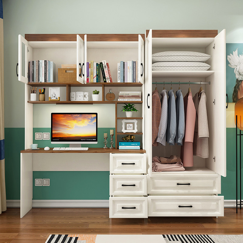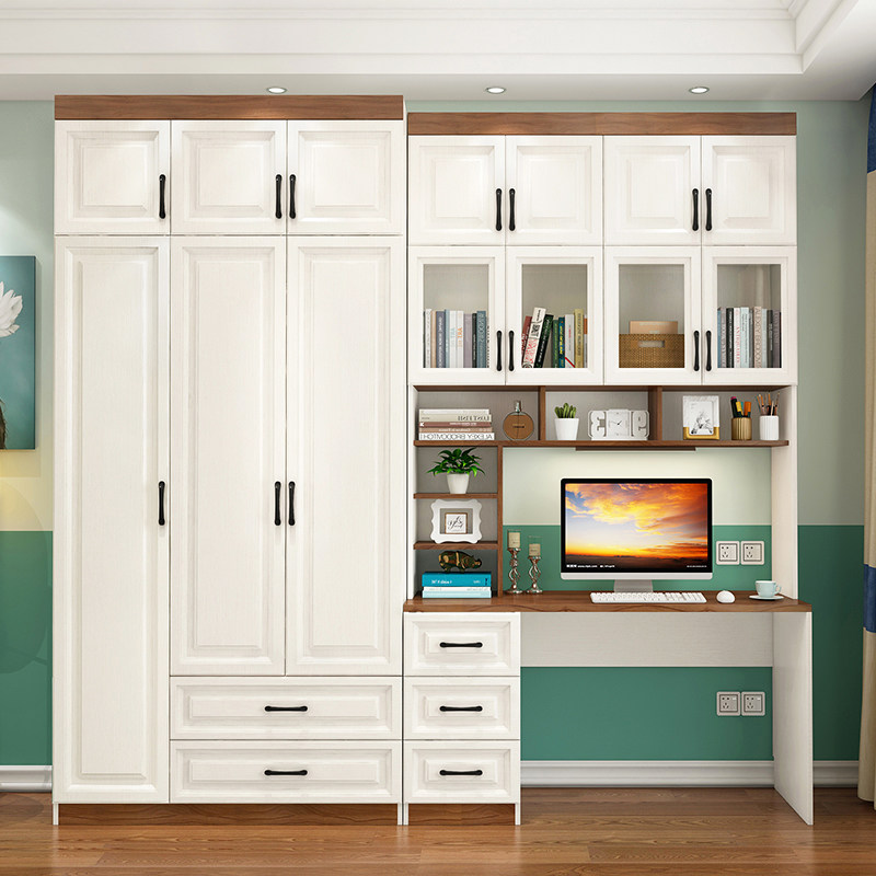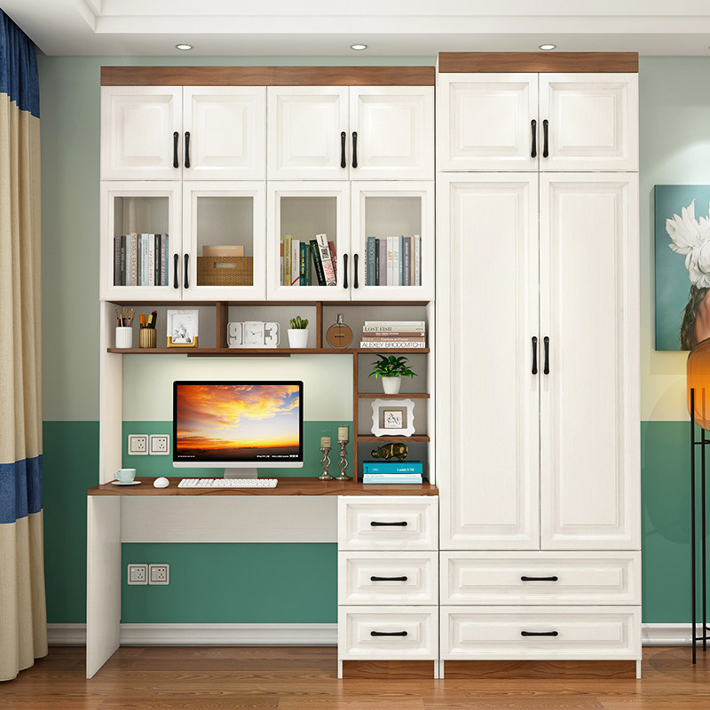 书房书柜儿童电脑桌书桌书架学生写字桌台办公桌卧室衣柜一体组合