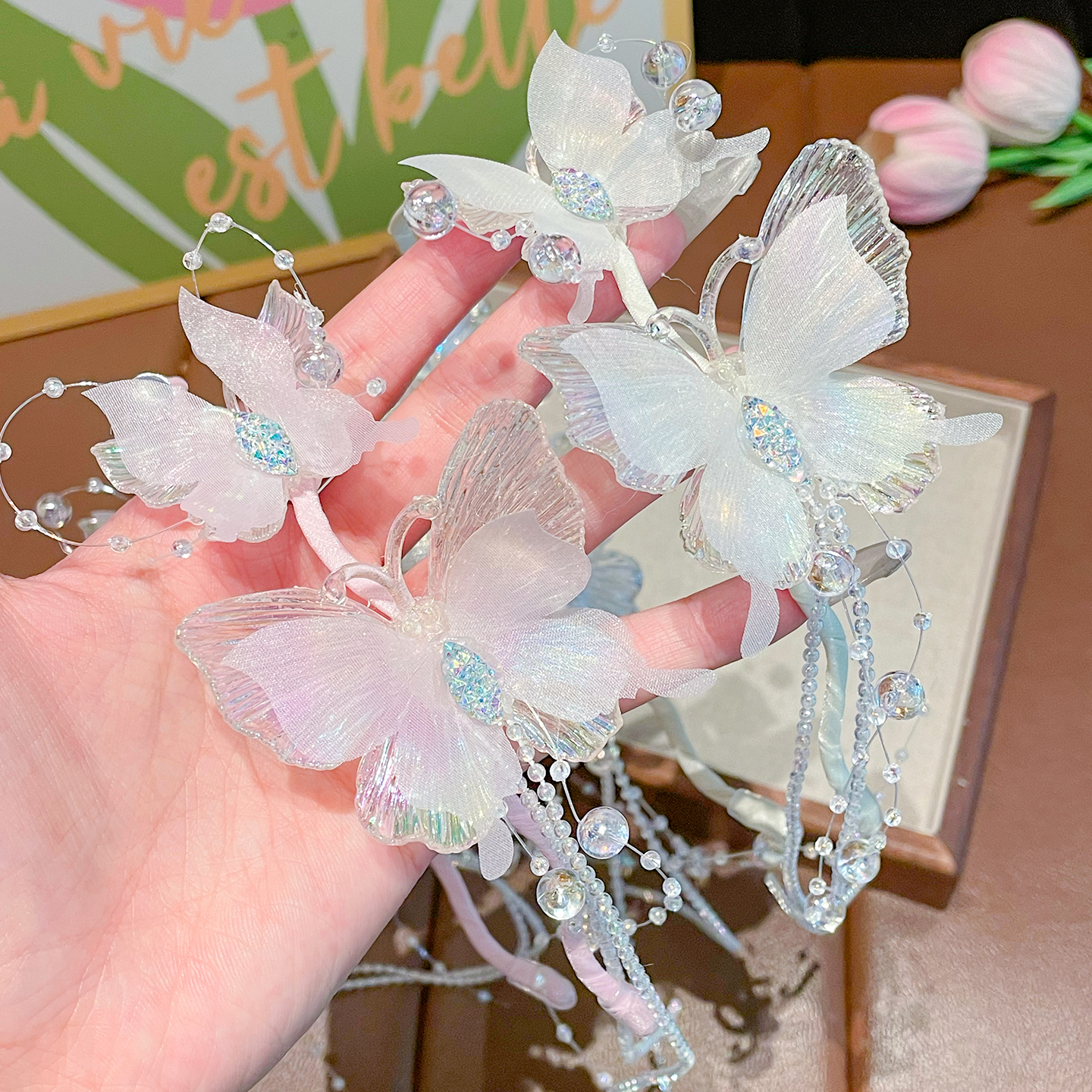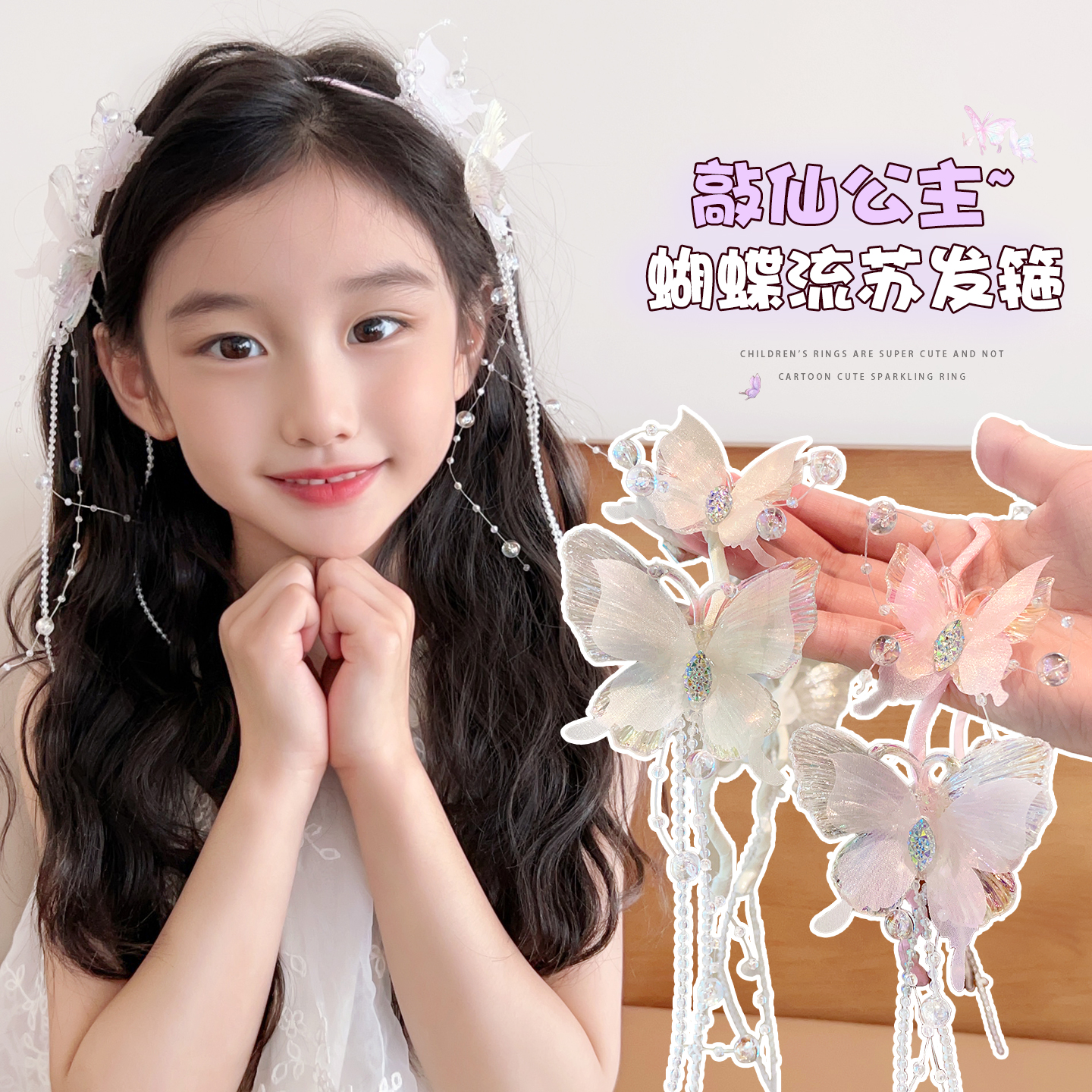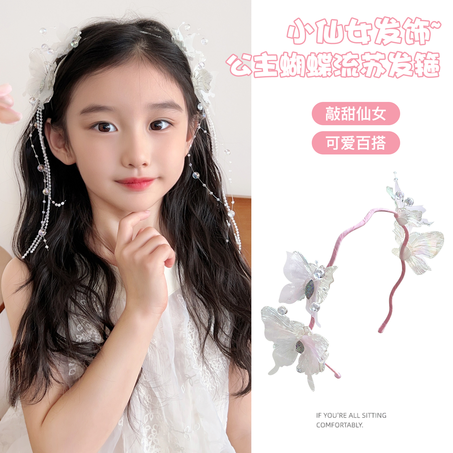 超仙蝴蝶流苏碎发箍儿童古风汉服头饰小女孩甜美不勒头箍公主发卡