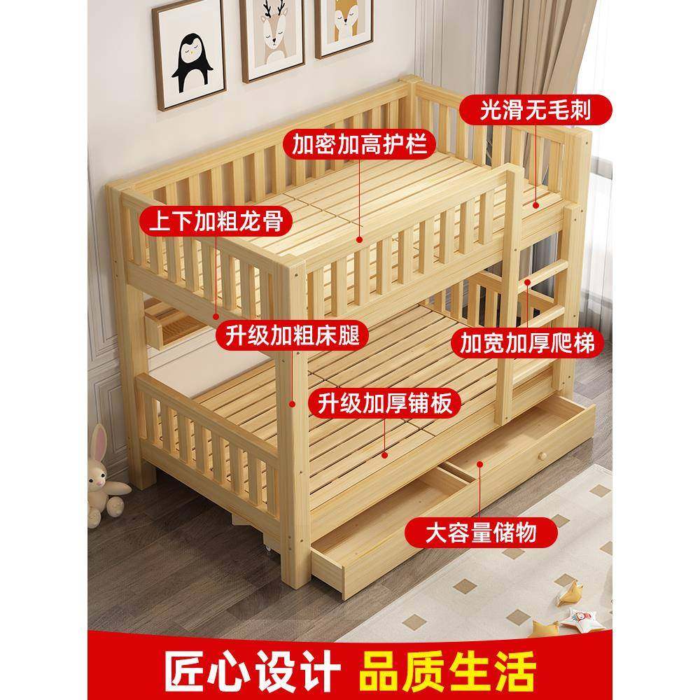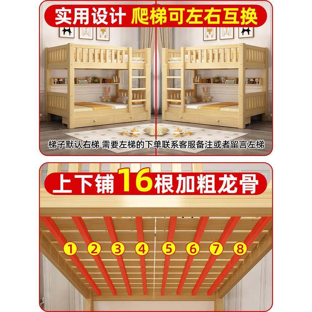 儿童实木高层低上下铺两加大人上床BDF-0219双层床双人同宽宿舍厚