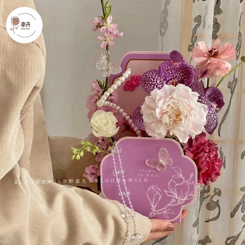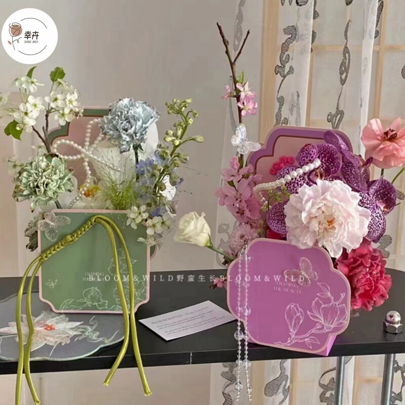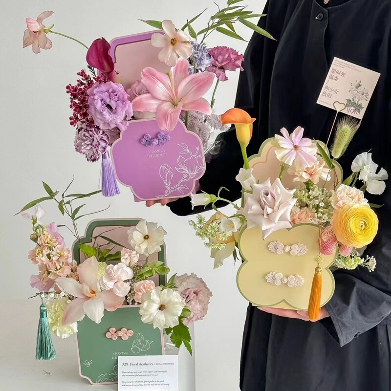 日常新款中式插花花盒花艺折叠礼盒鲜花花艺课插花纸盒鲜花花篮