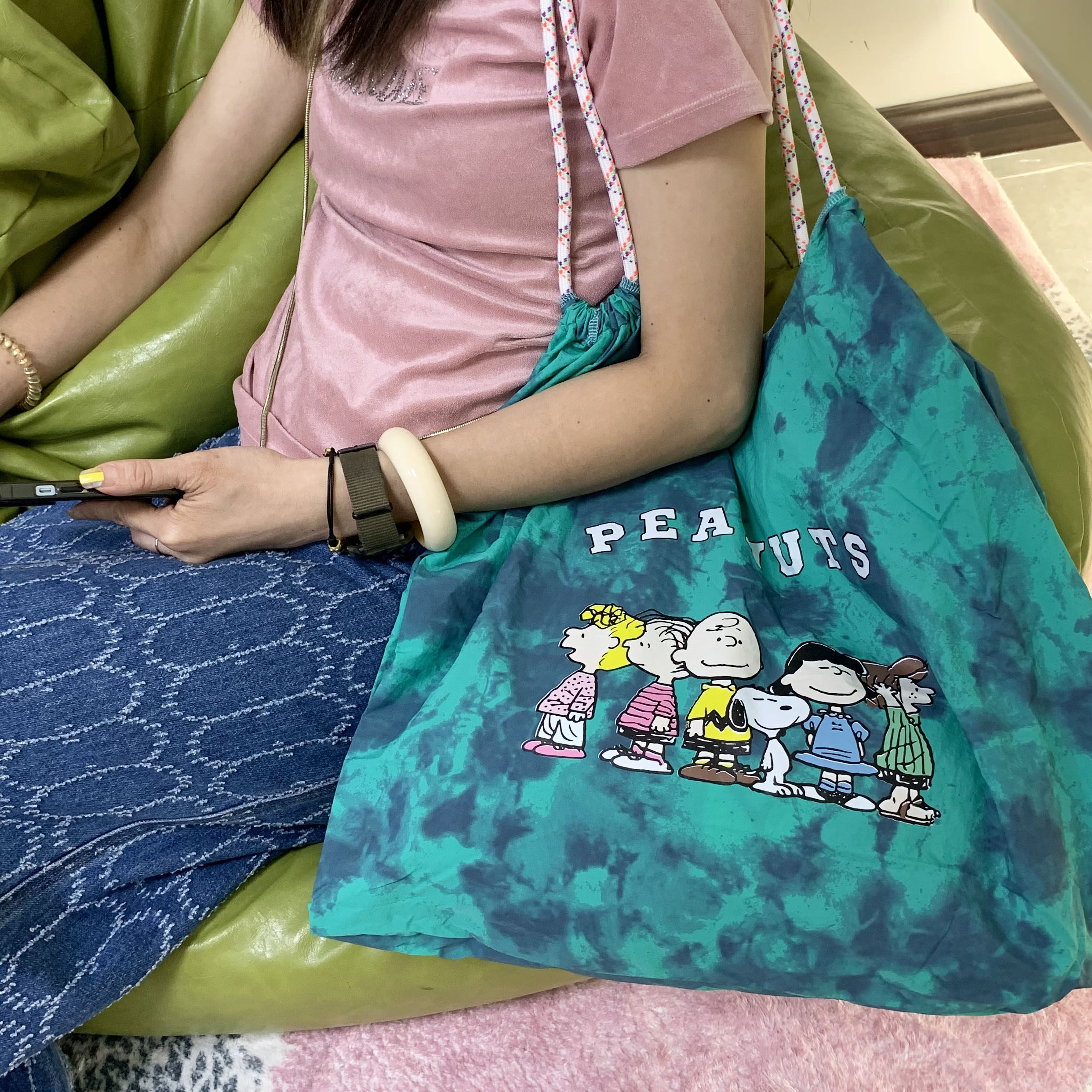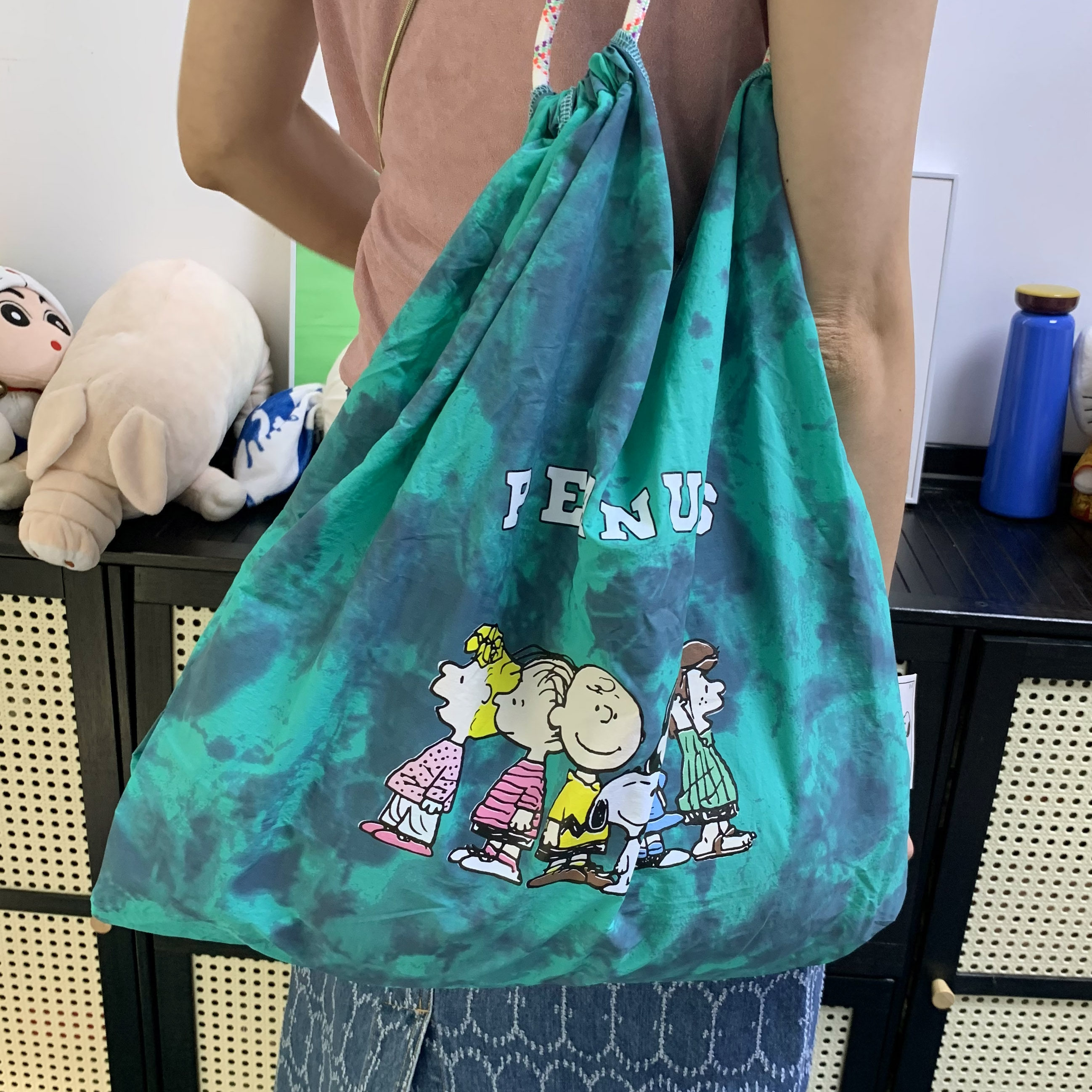 TEETH史努比家族印花轻便单肩包2025新日系卡通扎染手提托特包潮