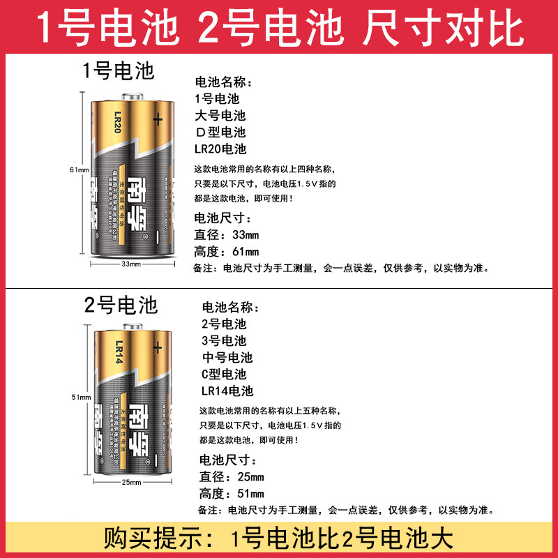 南孚1号电池2号电池一号二号碱性电池C型电池D型LR20收音机手电筒玩具LR14碱性电池